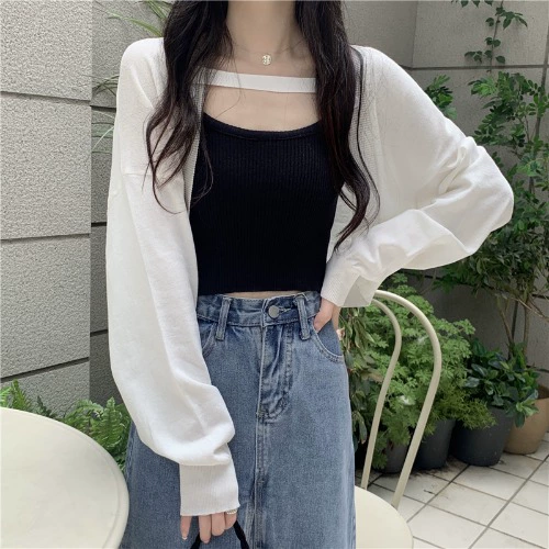| nameOriginal | Ice silk sun protection blouse jacket for women summer thin knitted cardigan suspender outer blouse short waistcoat top |