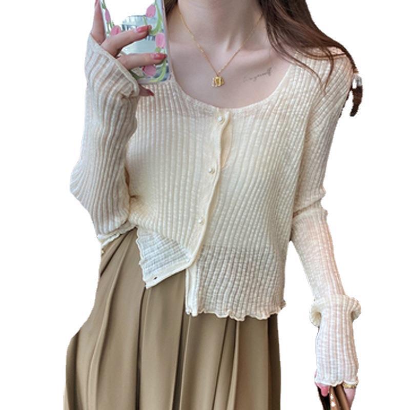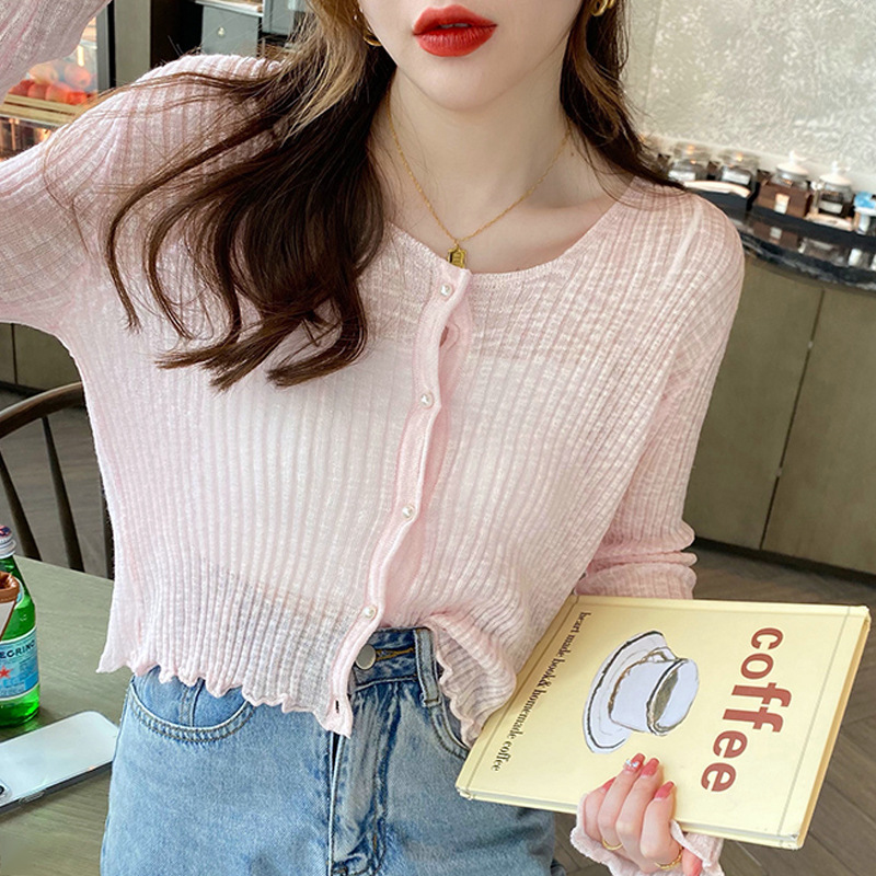 | nameOriginal | Ice Silk Sun Protection Cardigan Women's Summer Loose Outer Wear Thin Knitted Blouse Short Long Sleeve Top Jacket with Sling |