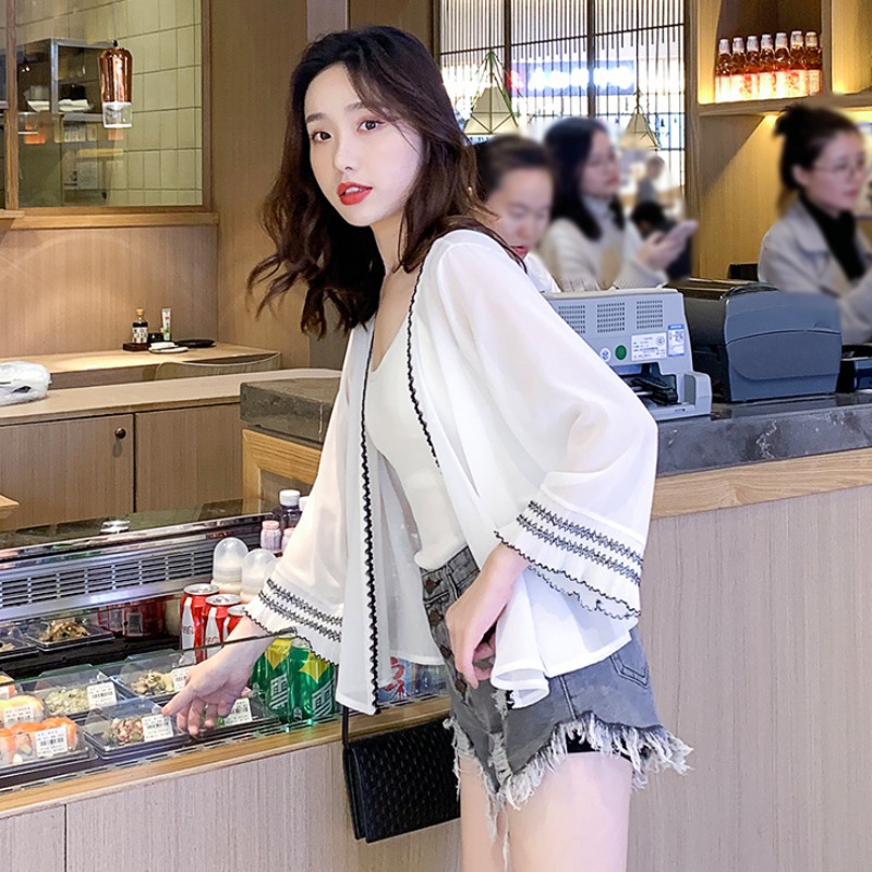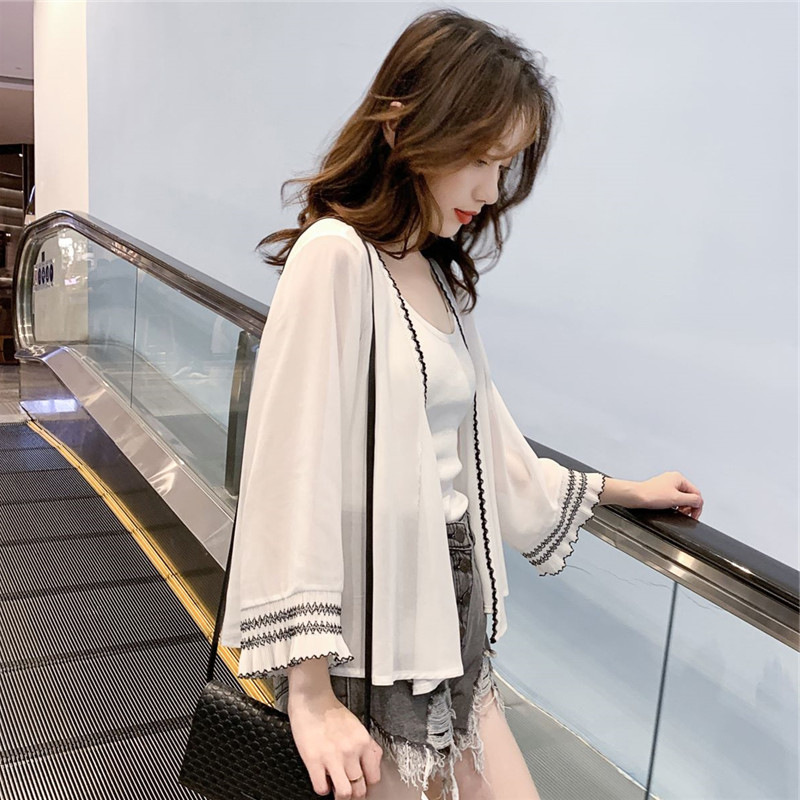 Ice Silk Sun Protection Clothing Women's Summer Chiffon Cardigan Thin Jacket Short Skirt with Sling Small Shawl Outer Blouse