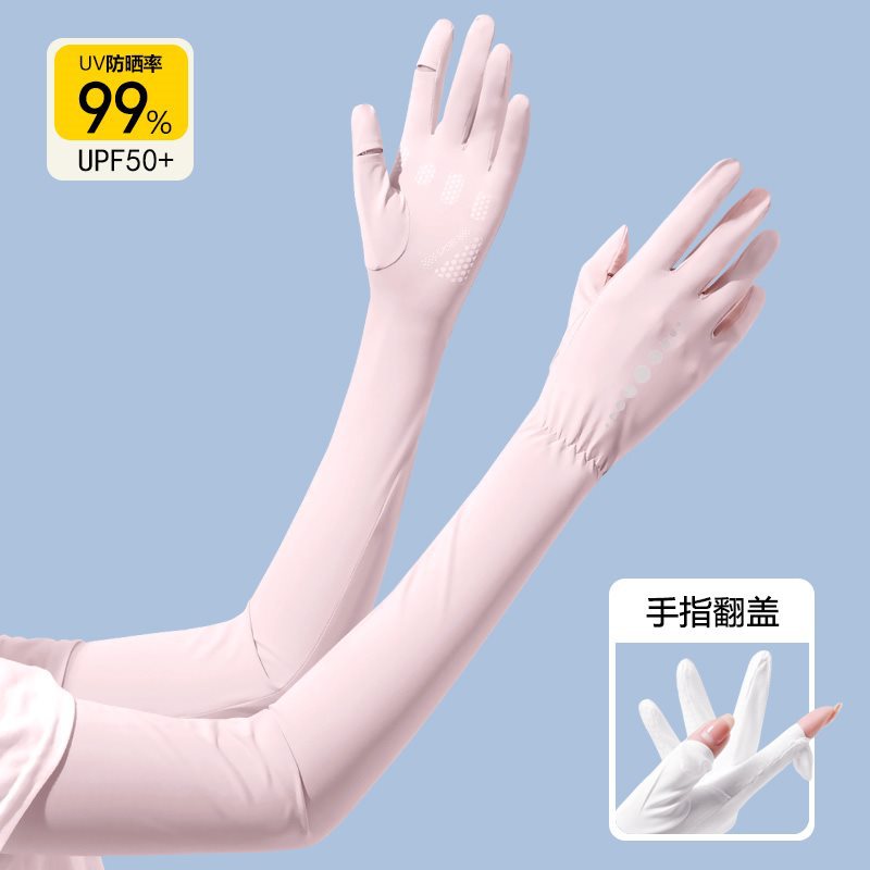 Ice Silk Sun Protection Gloves Men's and Women's Summer Lengthened Long Sleeve UV Protection Thin Arm Protection Loose Hand Sleeve Driving