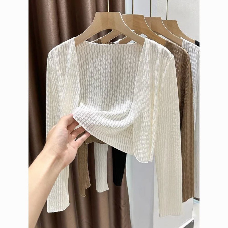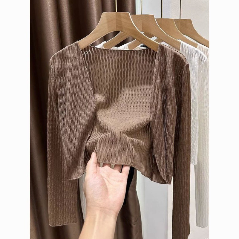 Ice silk sunscreen cardigan tulle lace shawl summer with suspenders dress outside air conditioning blouse high-end feeling