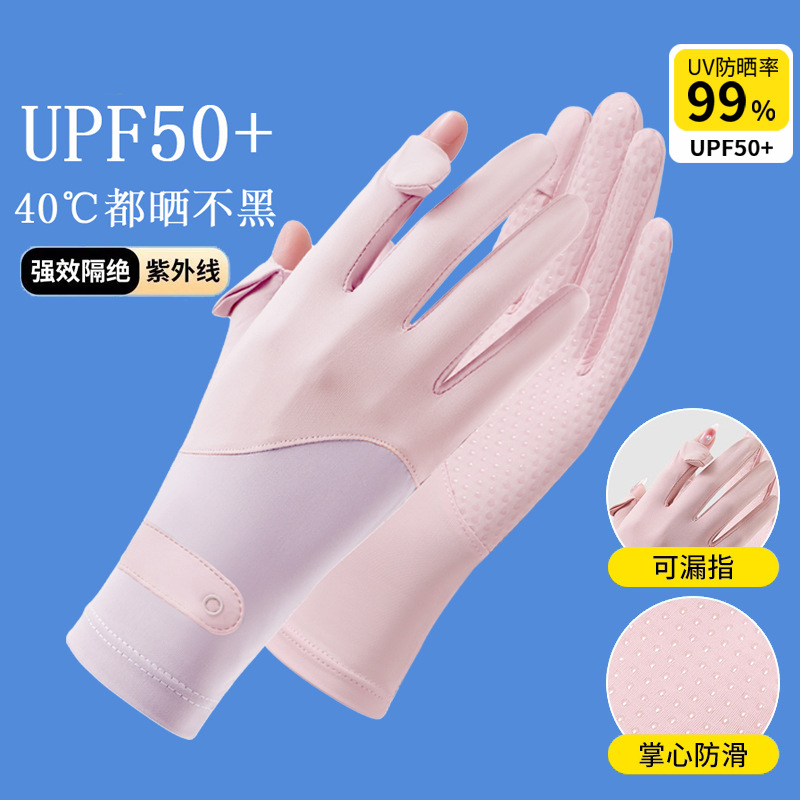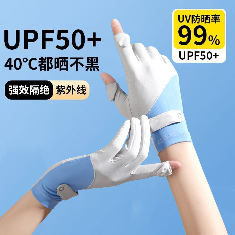 | nameOriginal | Ice silk sunscreen gloves for men and women in spring and summer light non-slip touch screen leakage two fingers anti-ultraviolet sunshade riding breathable |