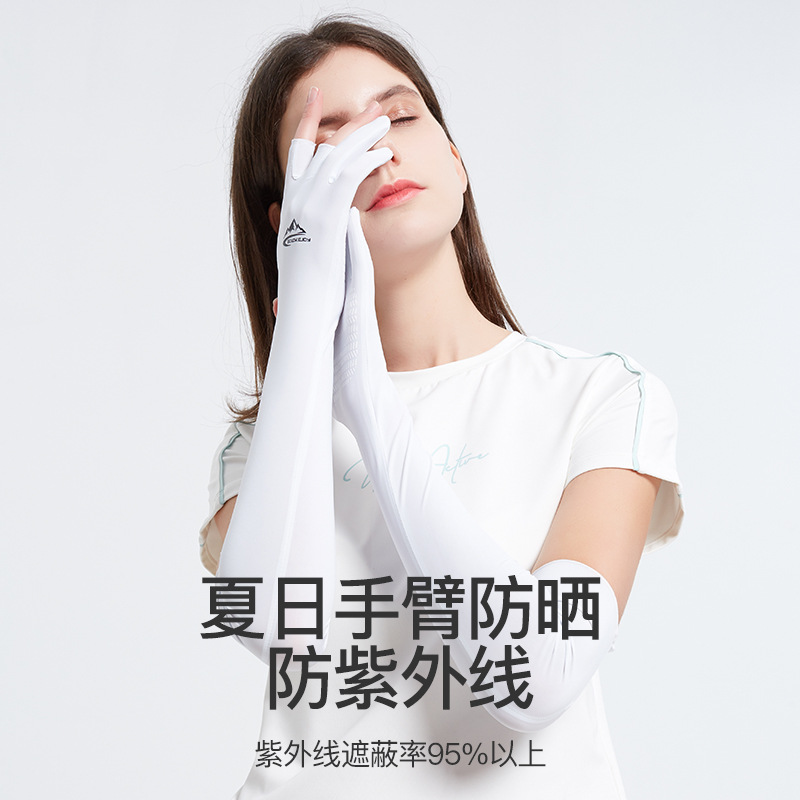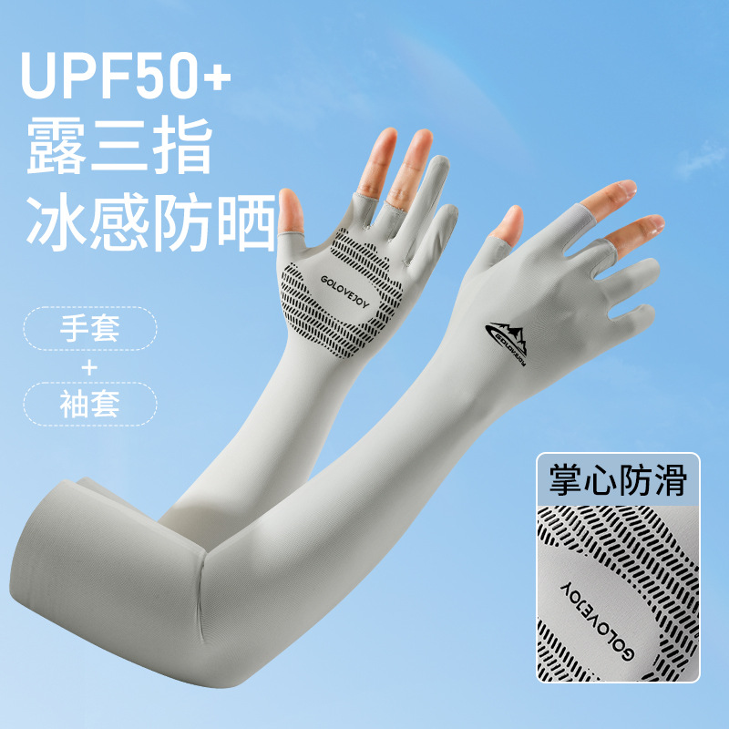 Ice silk sunscreen long sleeve sleeve men's and women's outdoor riding fishing anti-ultraviolet quick-drying finger gloves silicone non-slip