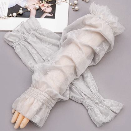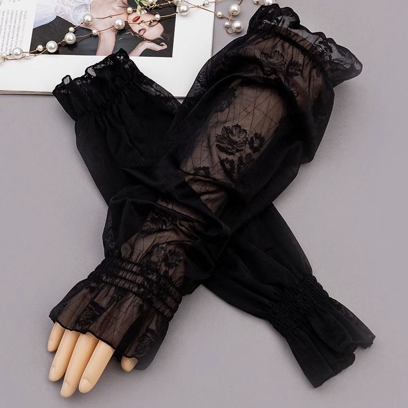 nameOriginal | Ice Silk Sunscreen Sleeves Women's 2024 New Lace Bubble Sleeves Plus Fertilizer Plus Size Driving Riding Ice Sleeves Thin Arm |