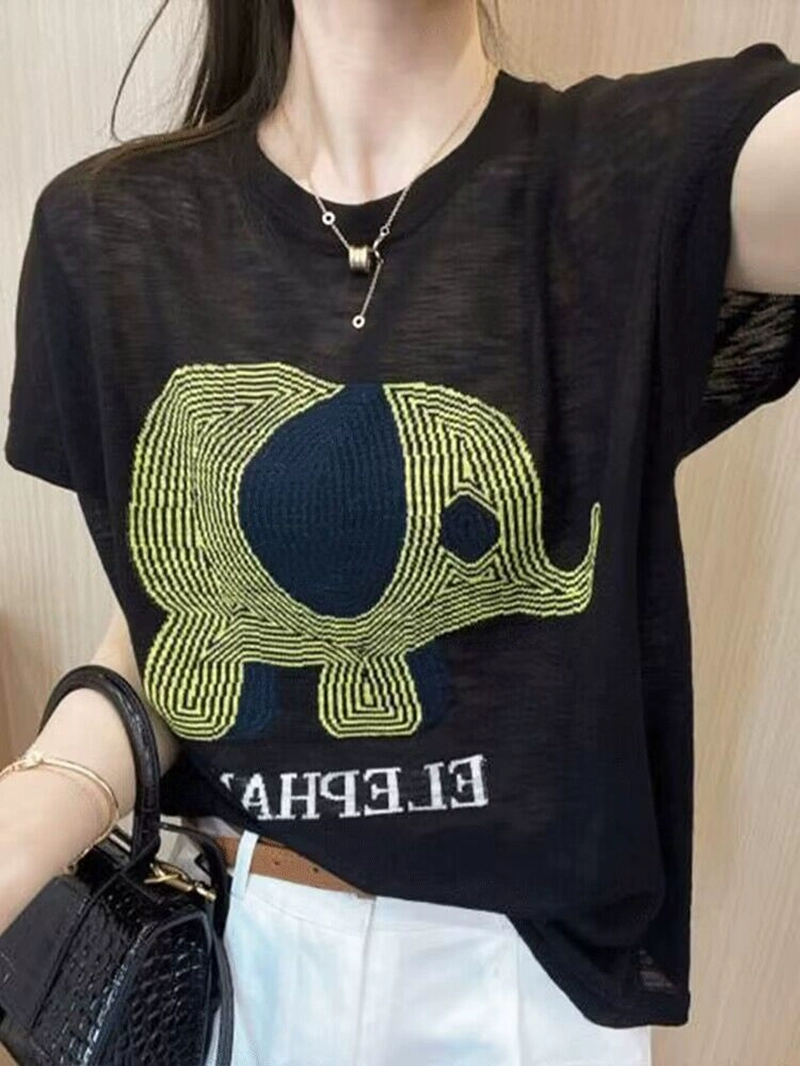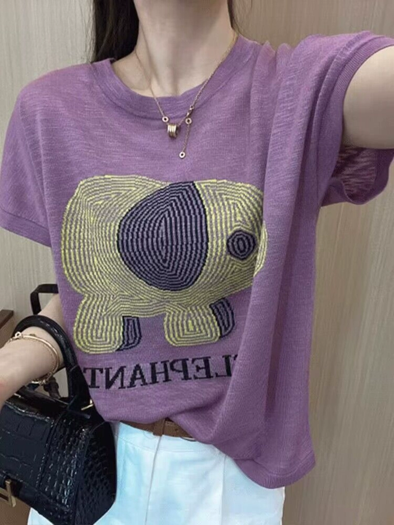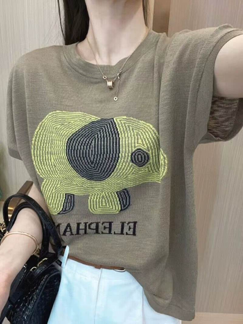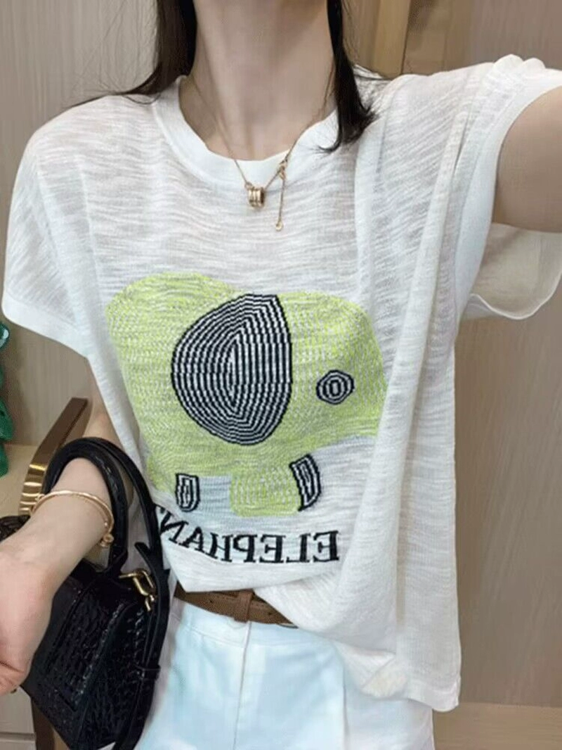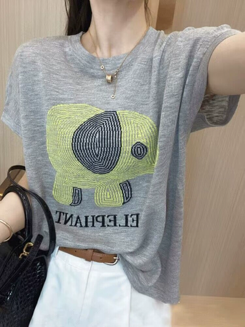 | nameOriginal | Ice silk sweater short-sleeved T-shirt women's thin summer 2023 new loose design tops for small people |