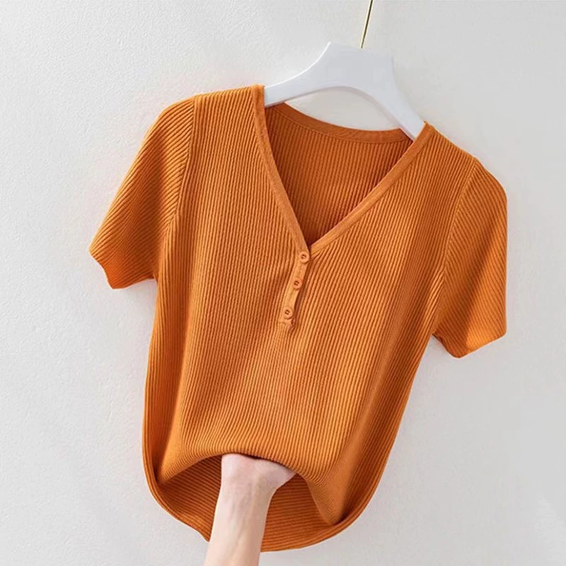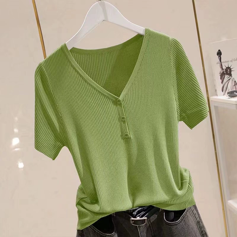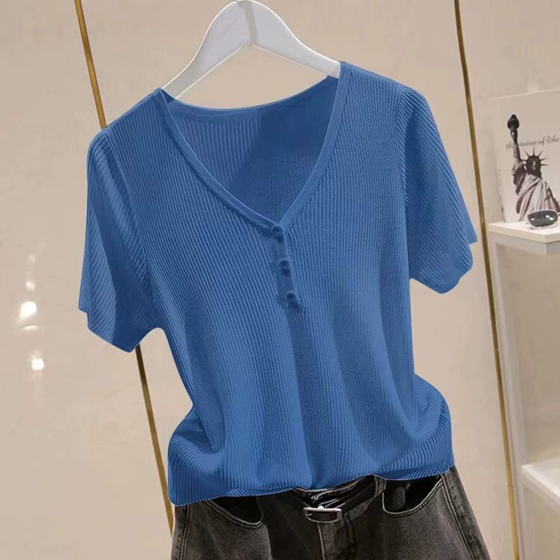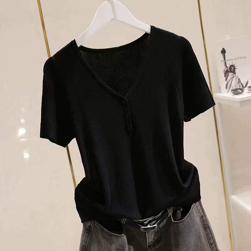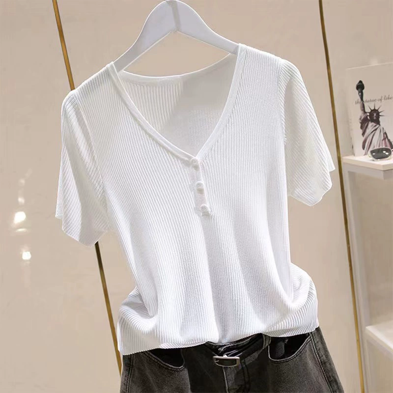 | nameOriginal | Ice silk sweater V-neck bottoming top with short sleeves |