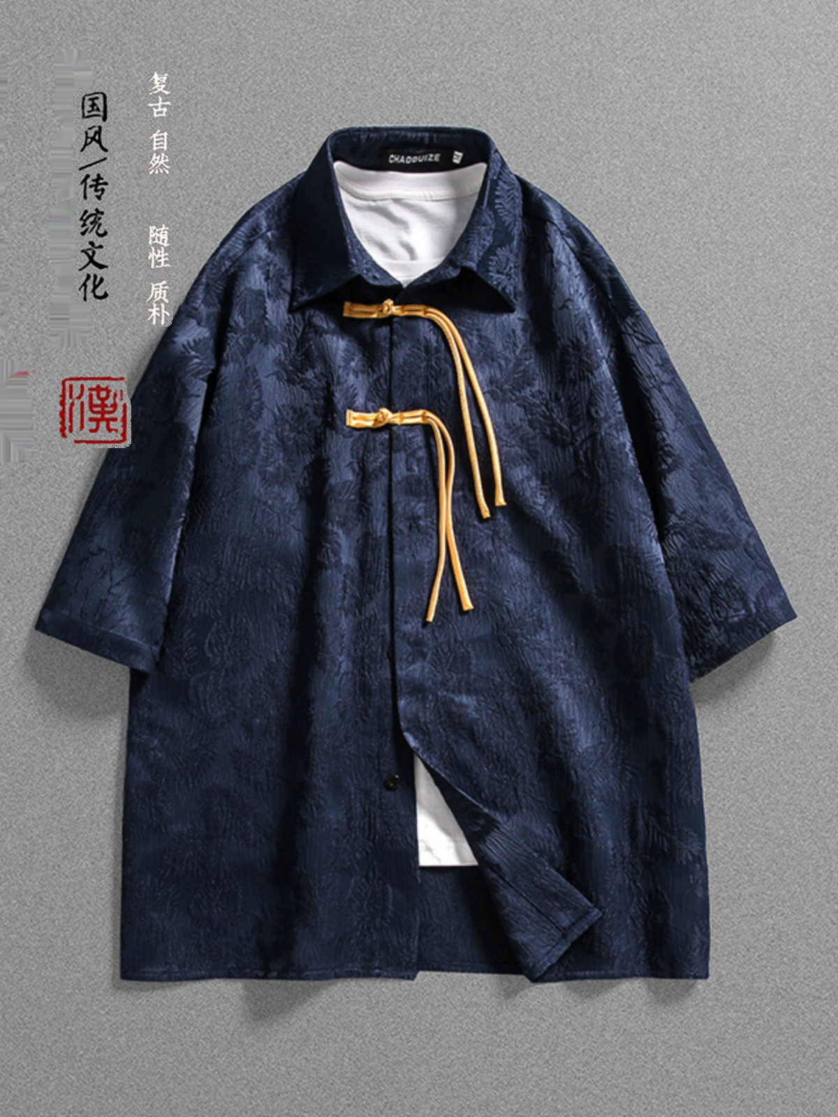 | nameOriginal | Ice silk Tang suit men's short-sleeved summer thin Chinese style men's retro style loose large size new Chinese style national trend shirt |