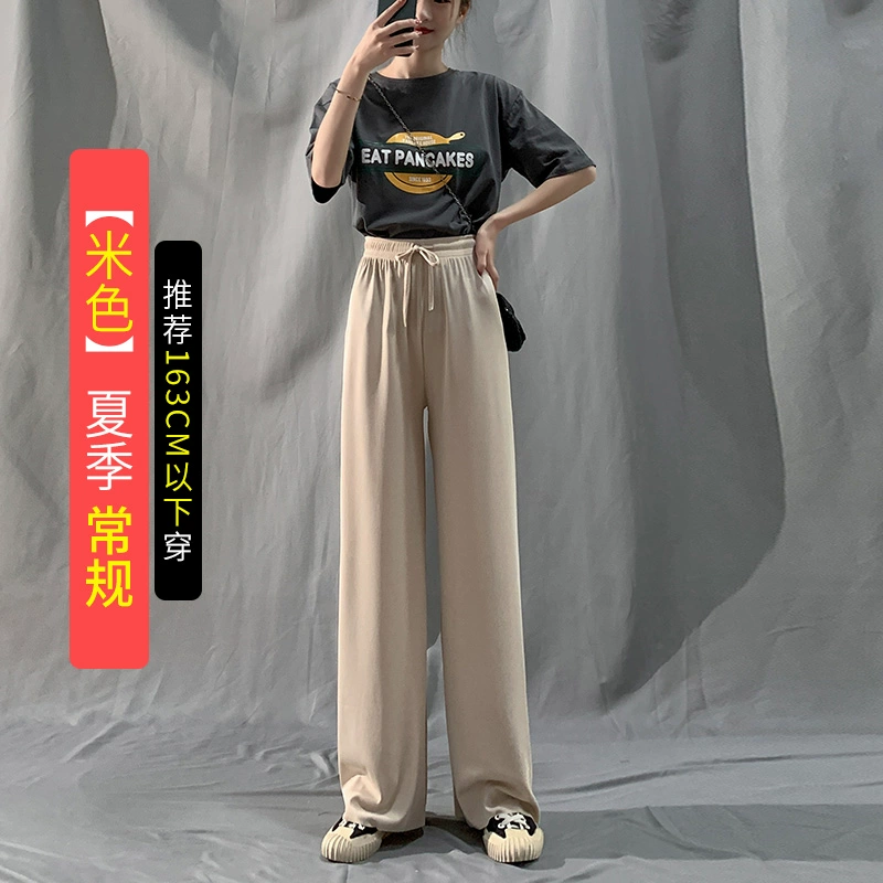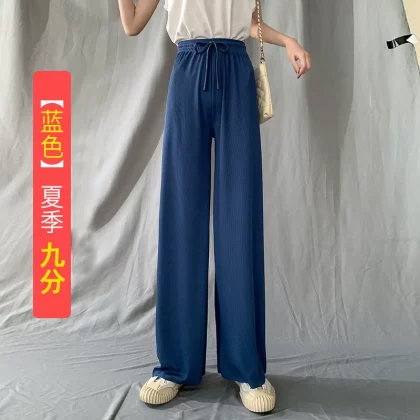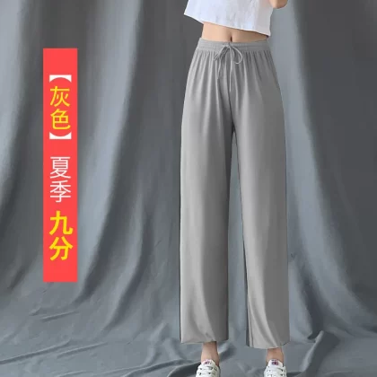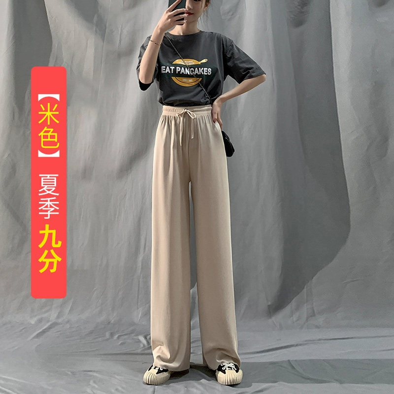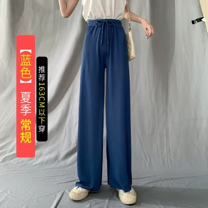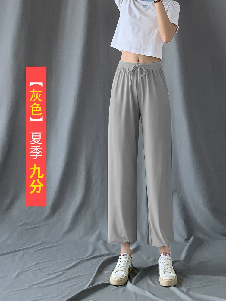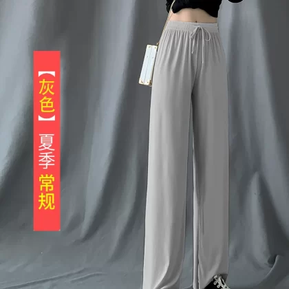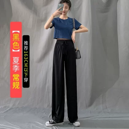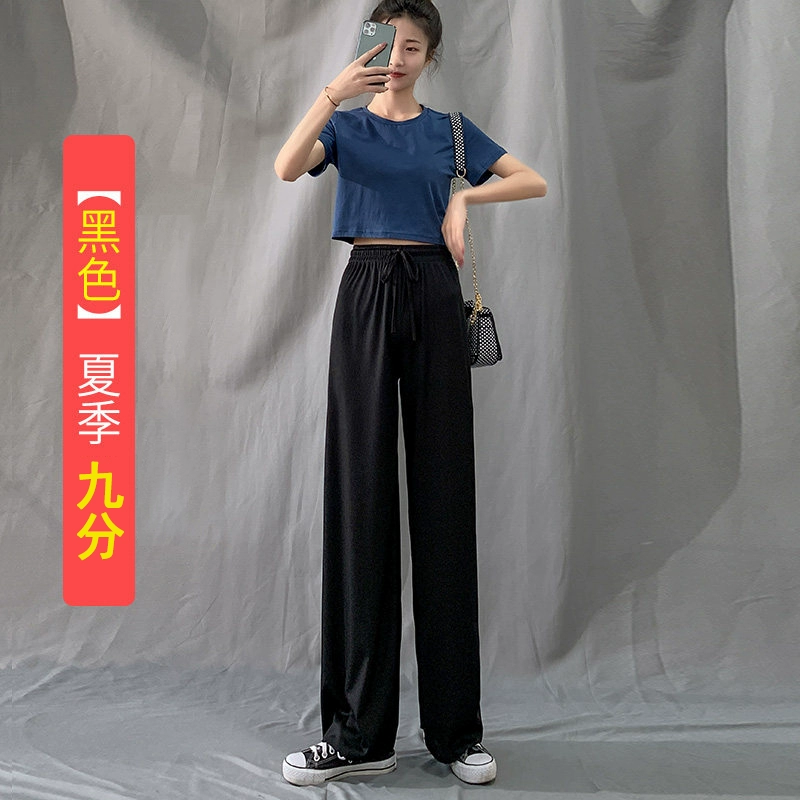 | nameOriginal | Ice silk thin black high waist casual straight wide leg pants |