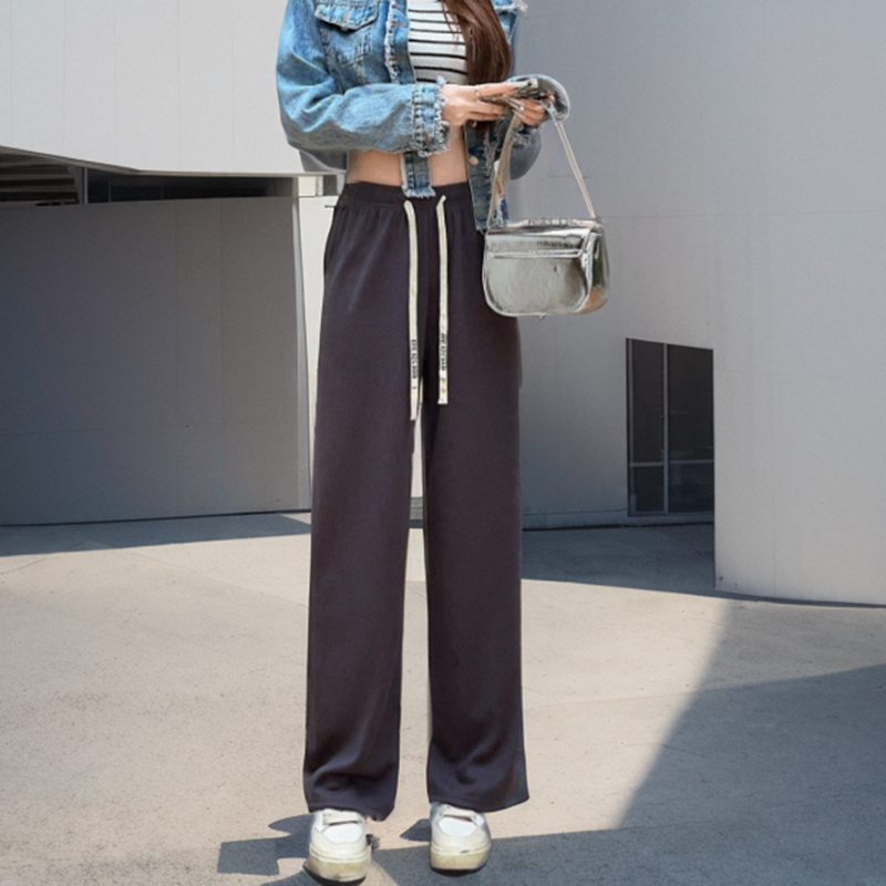 Bingshi thin waist high waist vertical leisure cold wide -leg pants