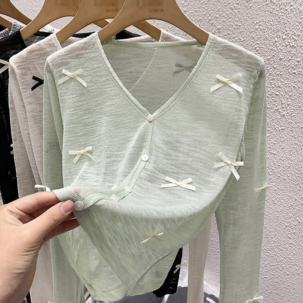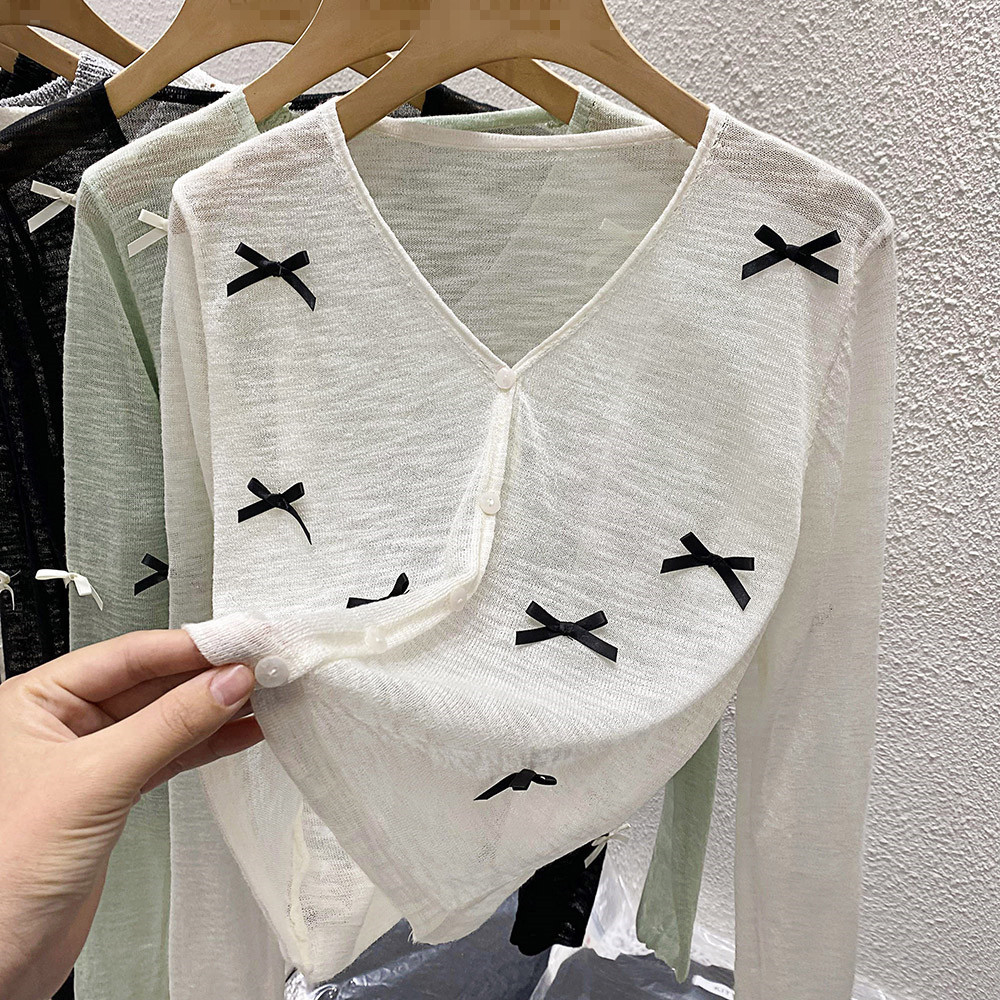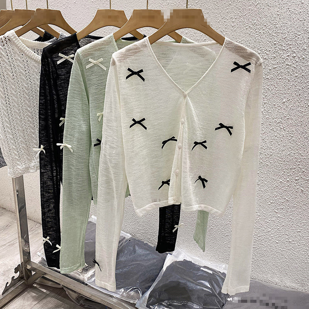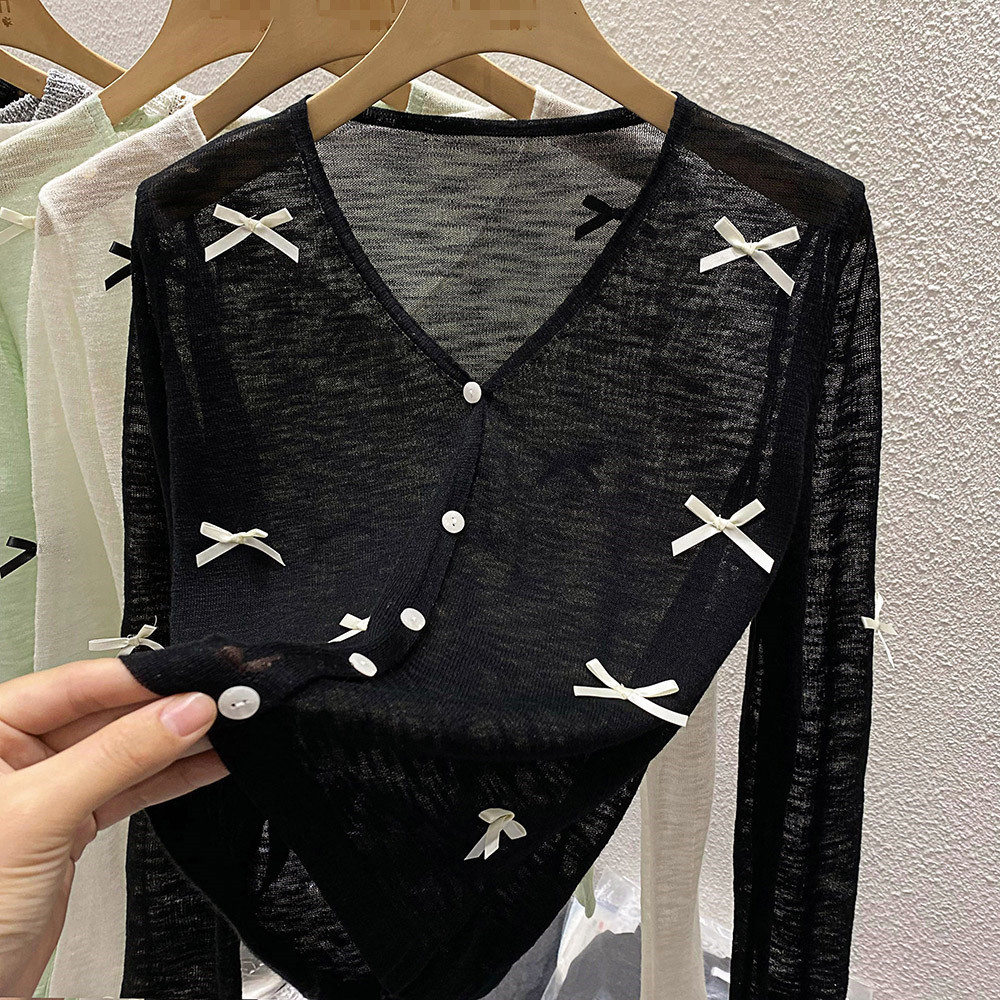 | nameOriginal | Ice Silk Thin Knitted Cardigan Jacket Women's Summer Long-Sleeved Bow Western Style Shawl Overshirt Sunscreen Top |