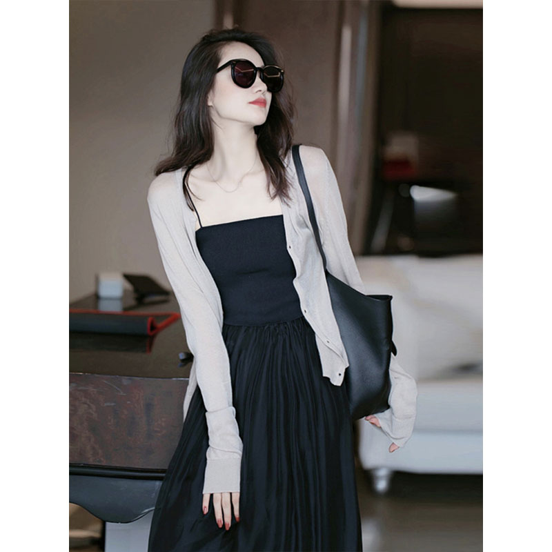 | nameOriginal | Ice Silk Thin Knitted Sunscreen Cardigan Jacket Women's Summer Shawl with Sling Skirt Outer Blouse Air Conditioning Top |