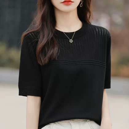Ice silk thin loose hollow sweater short -sleeved T -shirt
