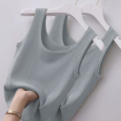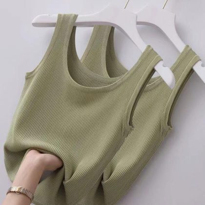 Ice Silk/Threaded Camisole Women’s plus size Slim-fit Outer Wear Sleeveless Base Vest