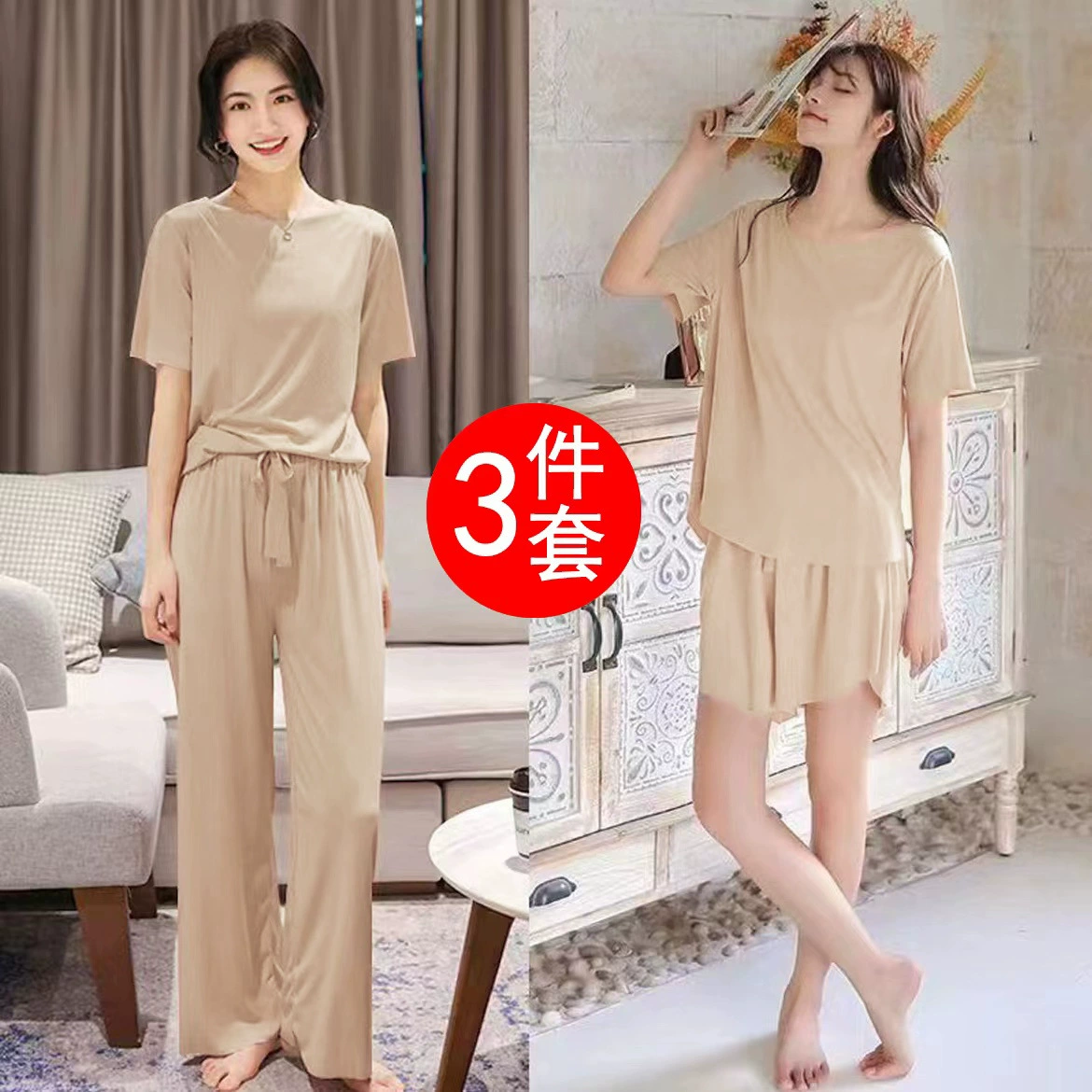 | nameOriginal | Ice silk three-piece set for women in summer and autumn new style soft pajamas home wear casual comfortable loose short-sleeved shorts set |