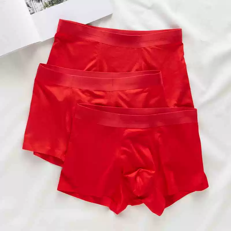 Ice silk underwear men’s flat corner men’s pants markless year of zodiac red modal breathable large size boy boxer shorts