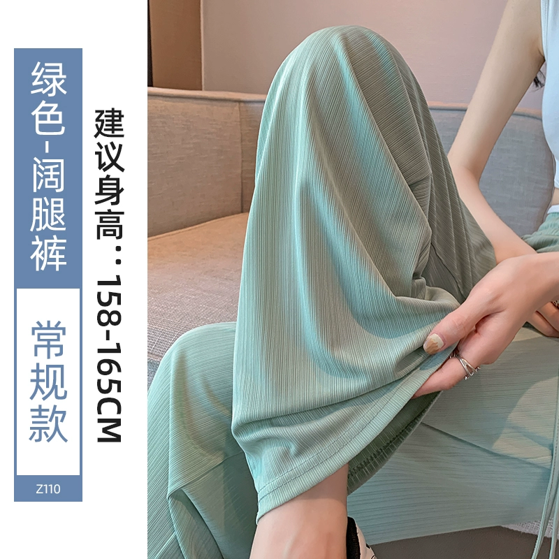 Ice silk wide leg pants for women summer thin 2024 new high waist drape loose casual summer cool straight trousers