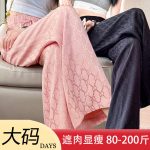| nameOriginal | Ice silk wide leg pants women 2024 new summer thin straight tube slim jacquard anti-mosquito plus size women's pants fat mm200 kg |