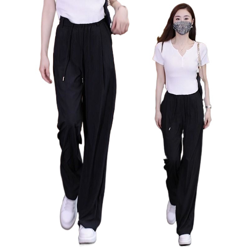 | nameOriginal | Ice Silk Wide-leg Pants Women's 2024 Summer New Arrival Elastoelastic High Waist Loose Slimming Cotton Linen Thin Straight-leg Yamamoto Pants |