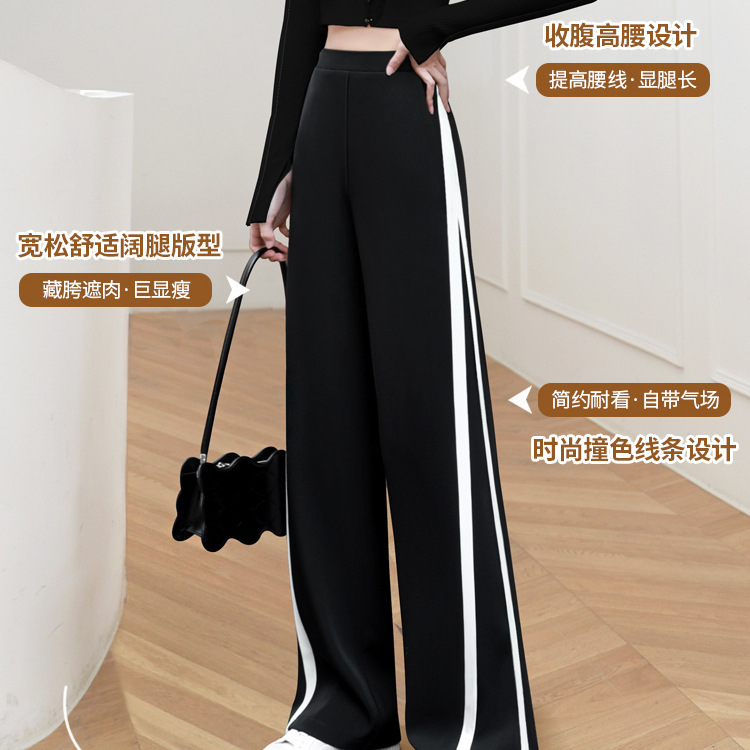Ice Silk Wide Leg Pants Women’s Summer Thin Small Narrow Version High Waist Dape Casual Straight Pants Chiffon Sun Protection Spring and Summer