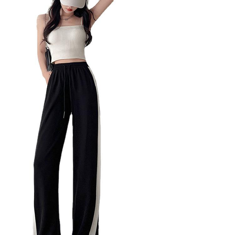 Ice Silk Wide Leg Pants Women's Summer Thin Small Narrow Version High Waist Dape Casual Straight Pants Chiffon Sun Protection Spring and Summer