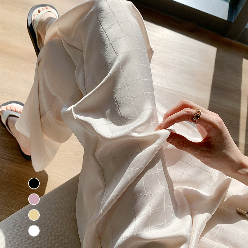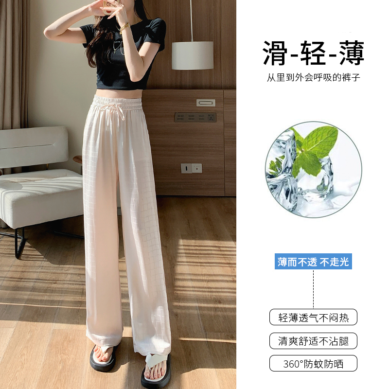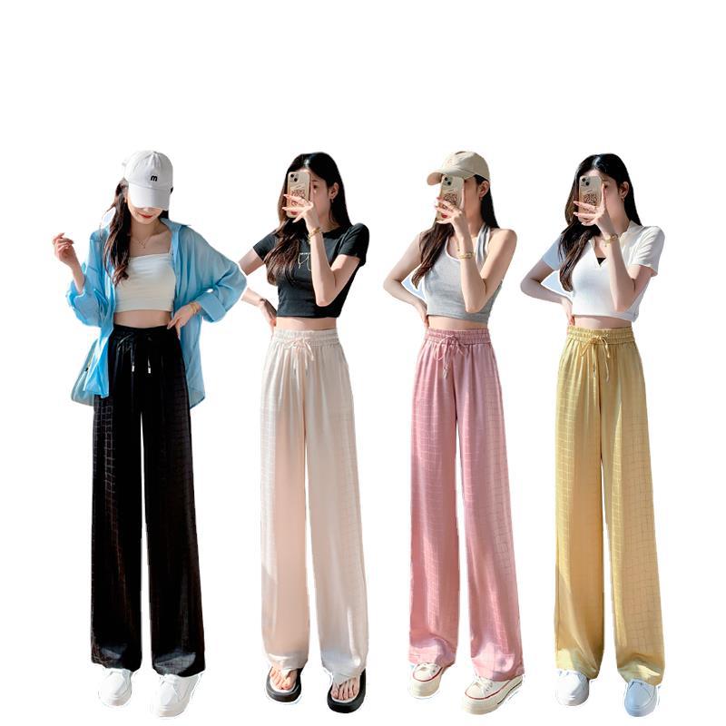 | nameOriginal | Ice Silk Wide-Leg Pants Women's Summer Thin Straight Loose Acetic Acid Casual Pants High Waist Draping Plaid Cool Shaking Pants |