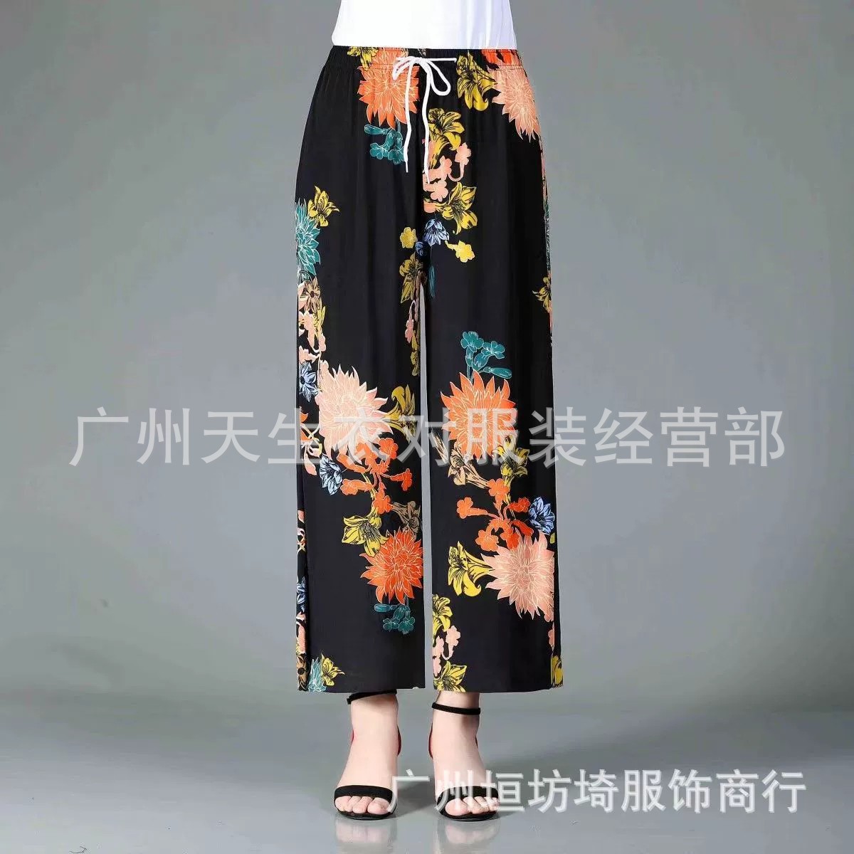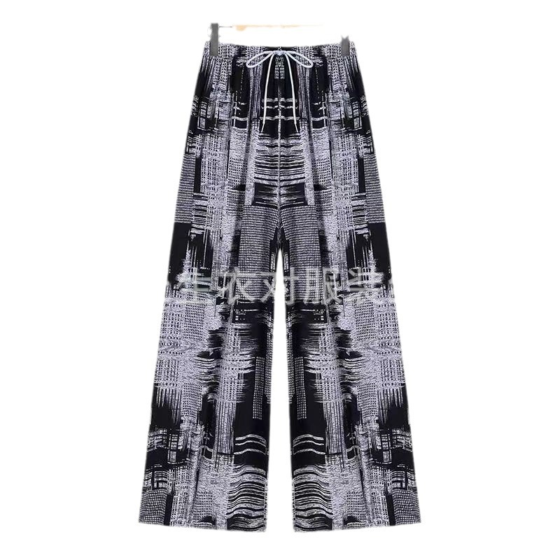Ice Silk wide-leg women's pants summer ice silk thin middle-aged and elderly mom pants cool pants loose straight casual pants