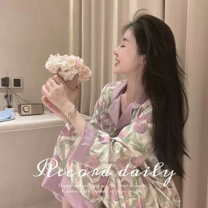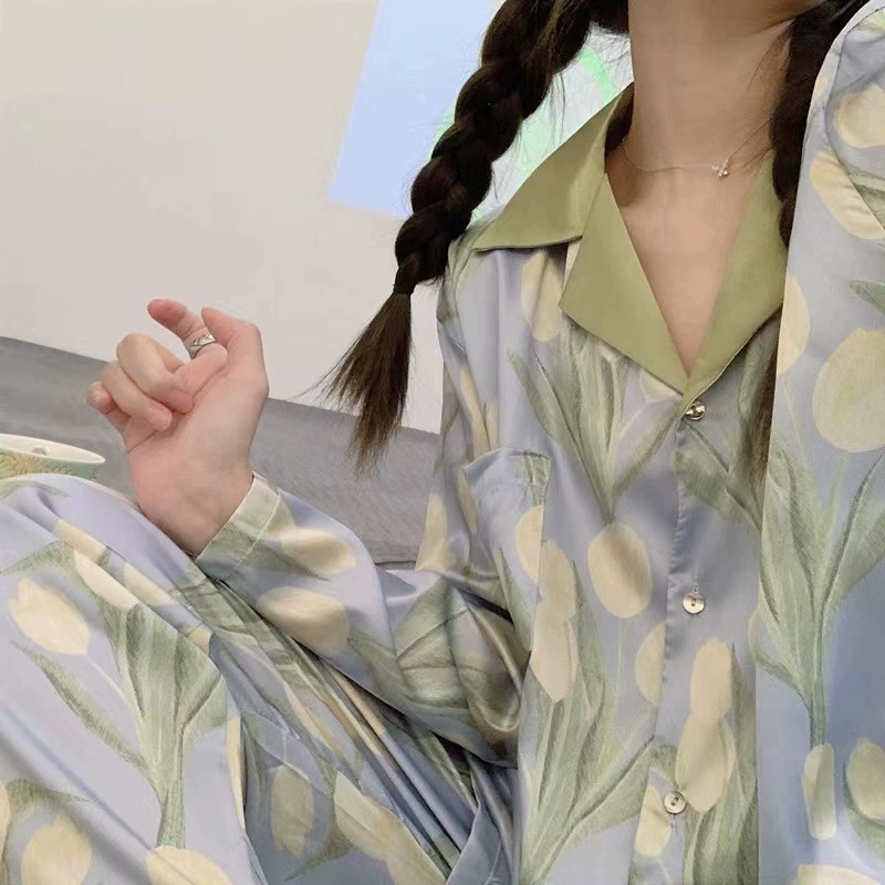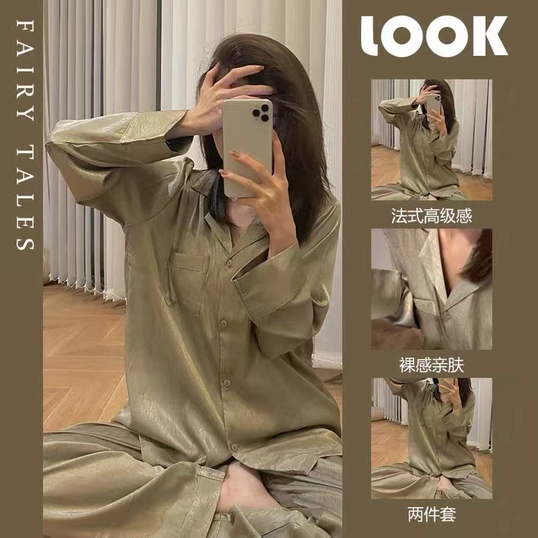 | nameOriginal | Ice silk women's high-end two-piece home wear pajamas |