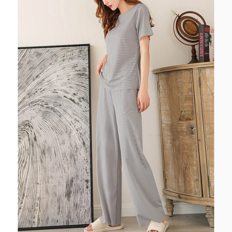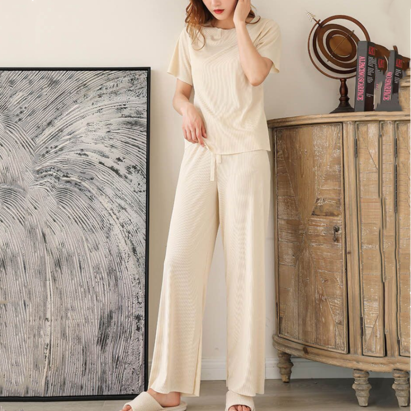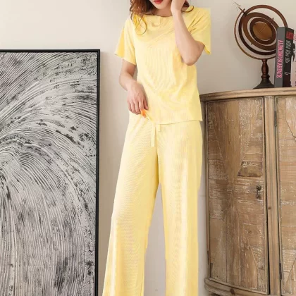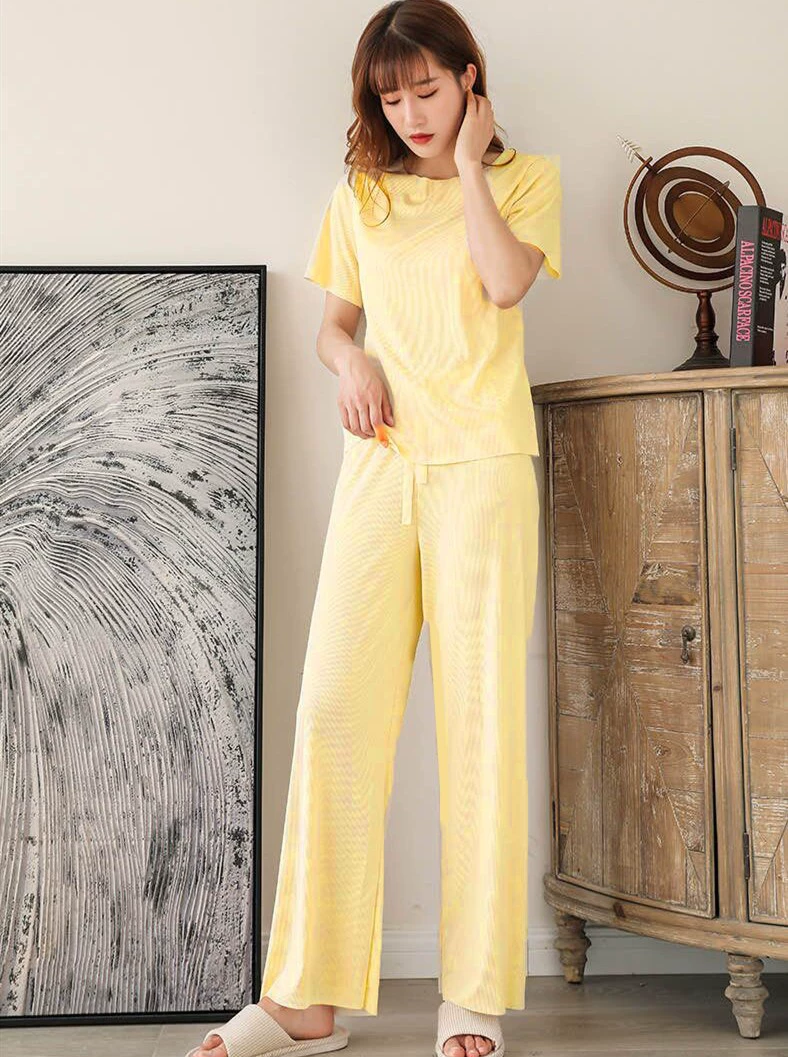 | nameOriginal | Ice silk women's short-sleeved T-shirt nine-quarter pants pajama set |