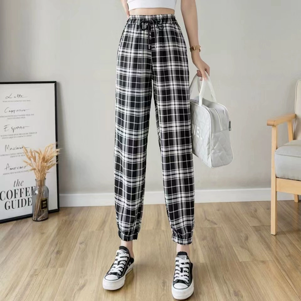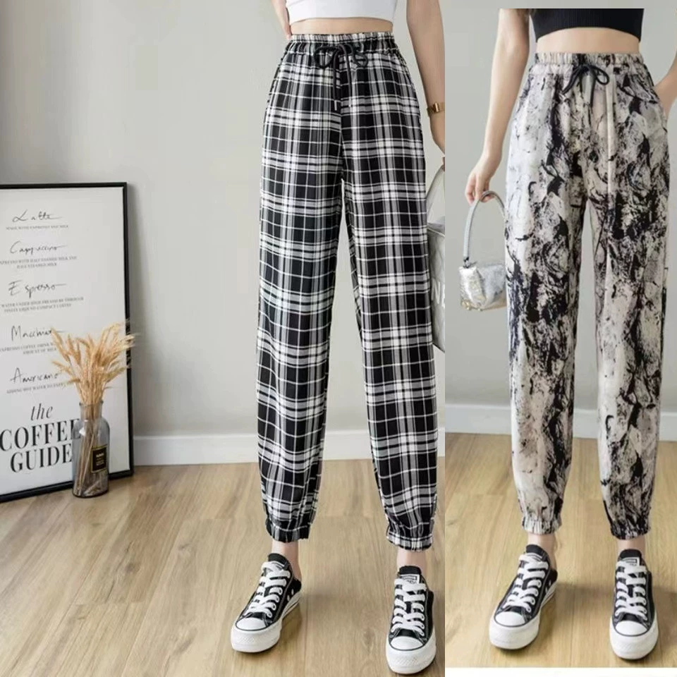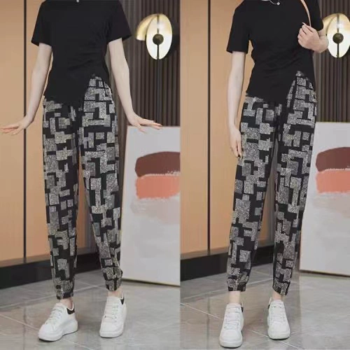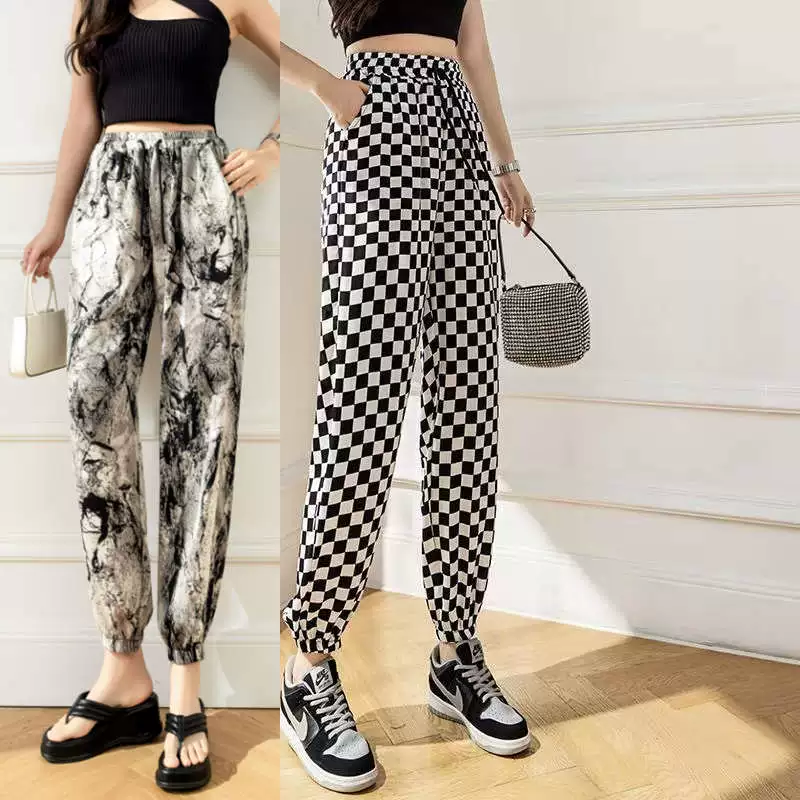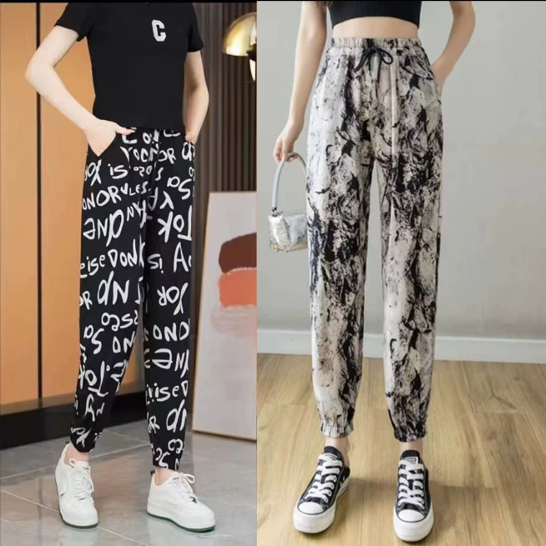 Ice Silk Women's Summer Loose Printed Foot-tie Sports Cool Pants