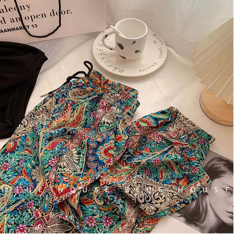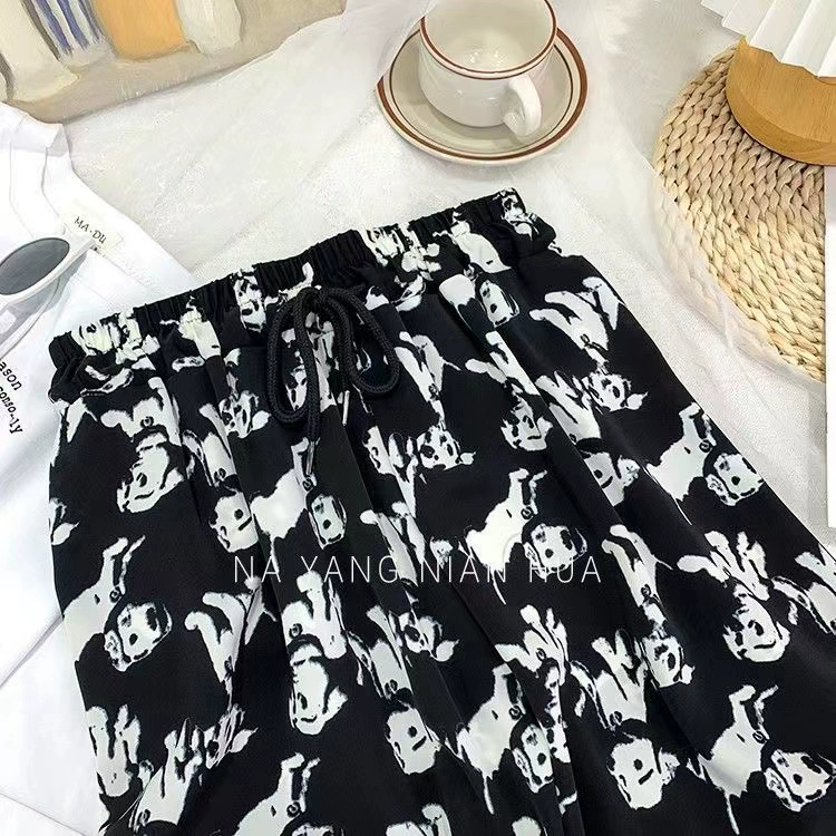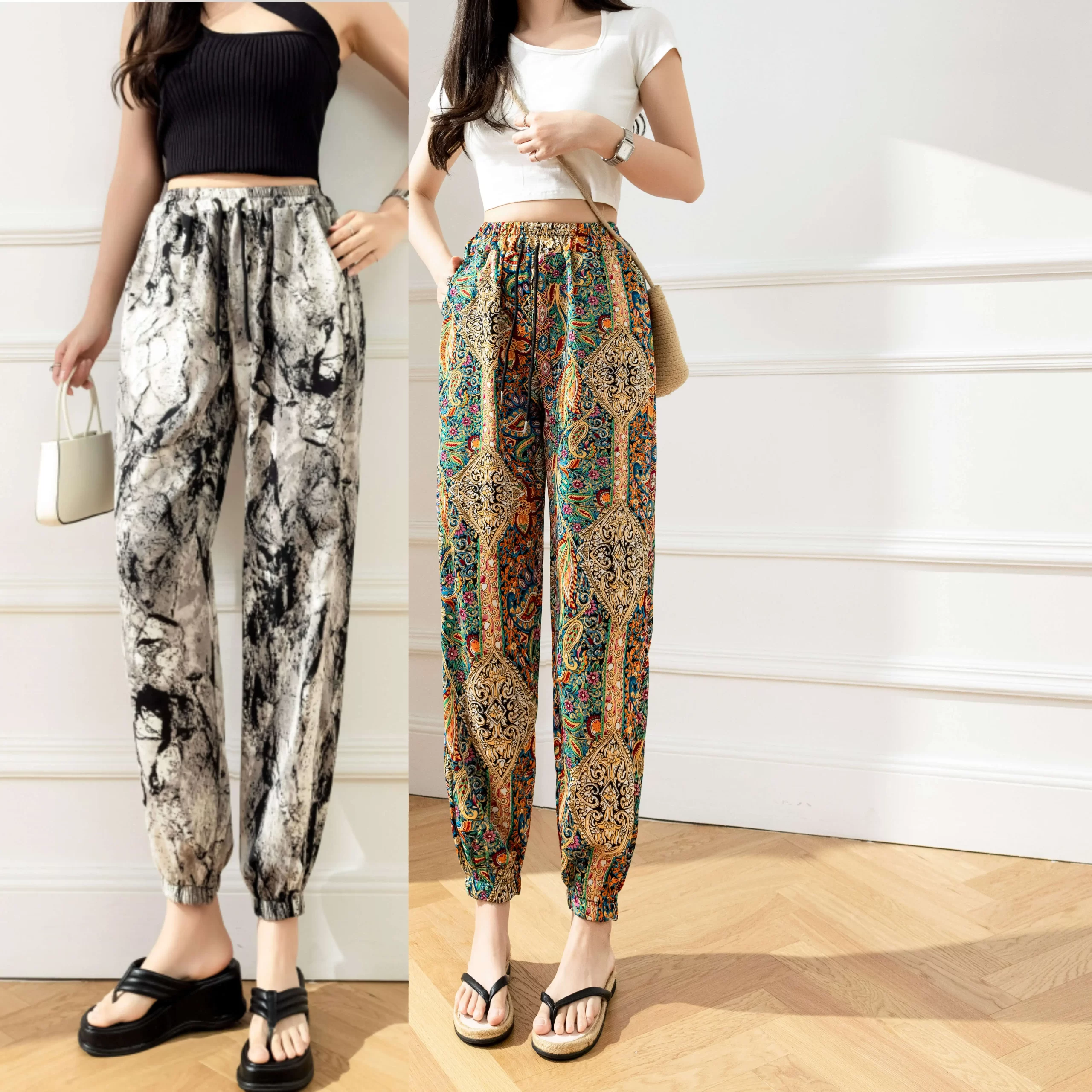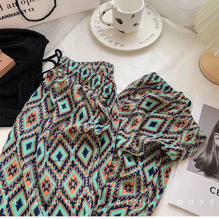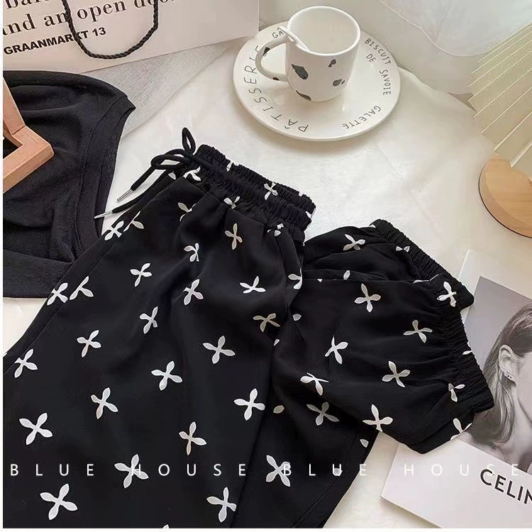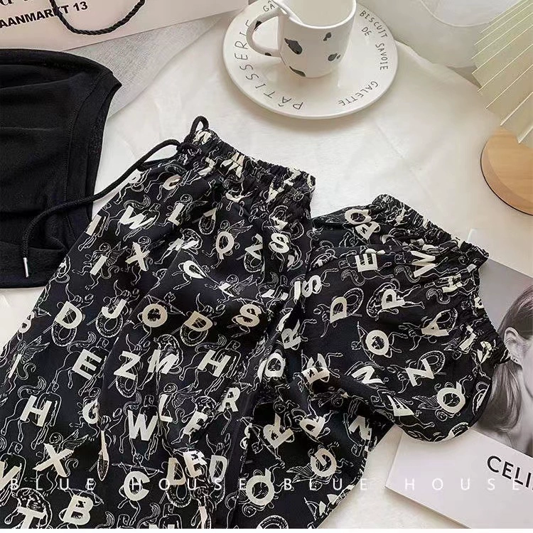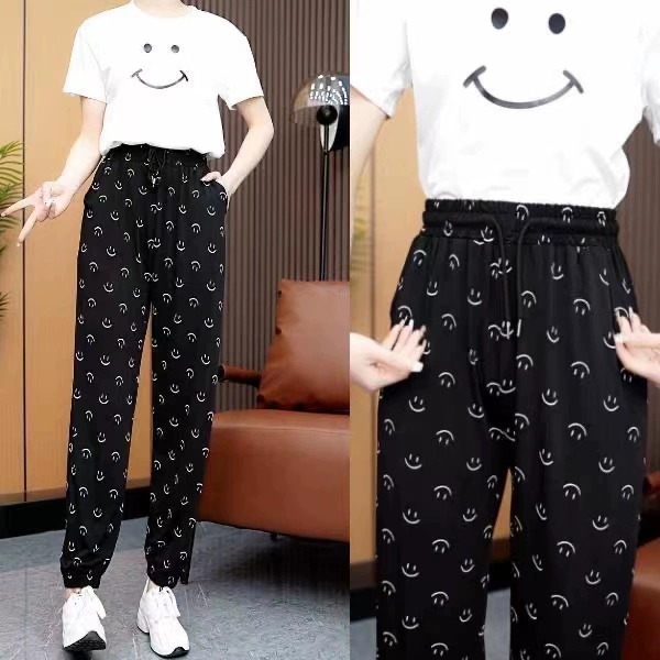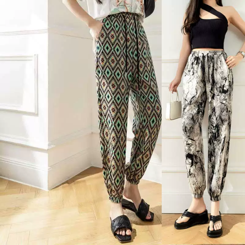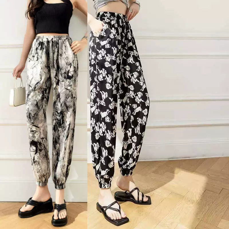 Ice silk girl summer loose printing foot exercise cold pants