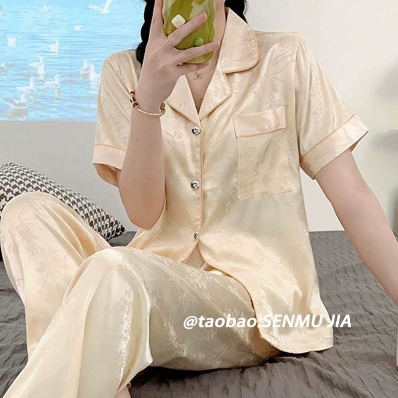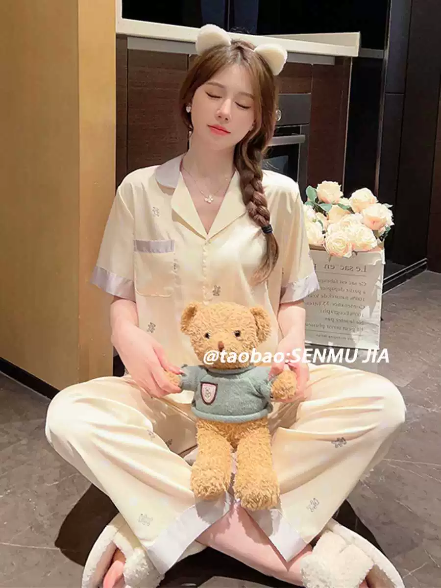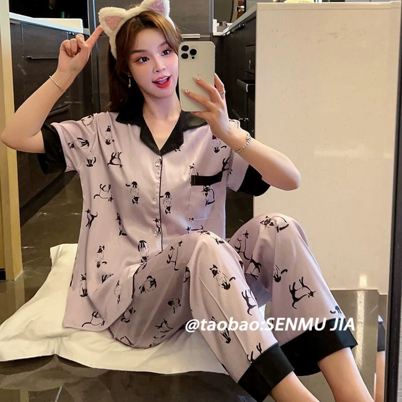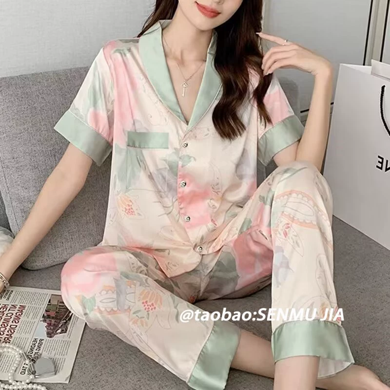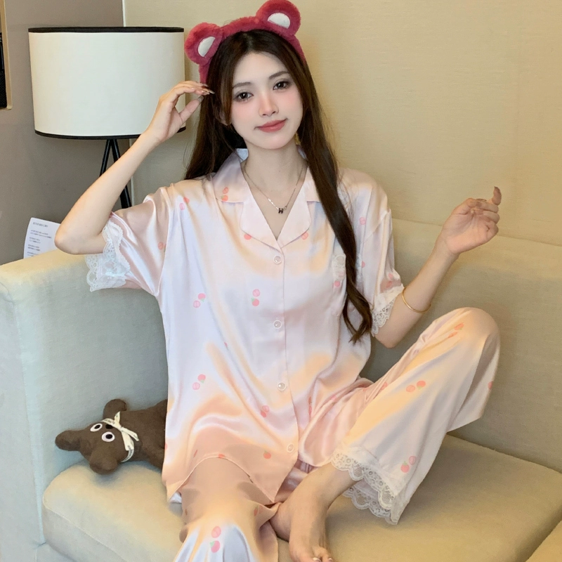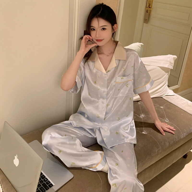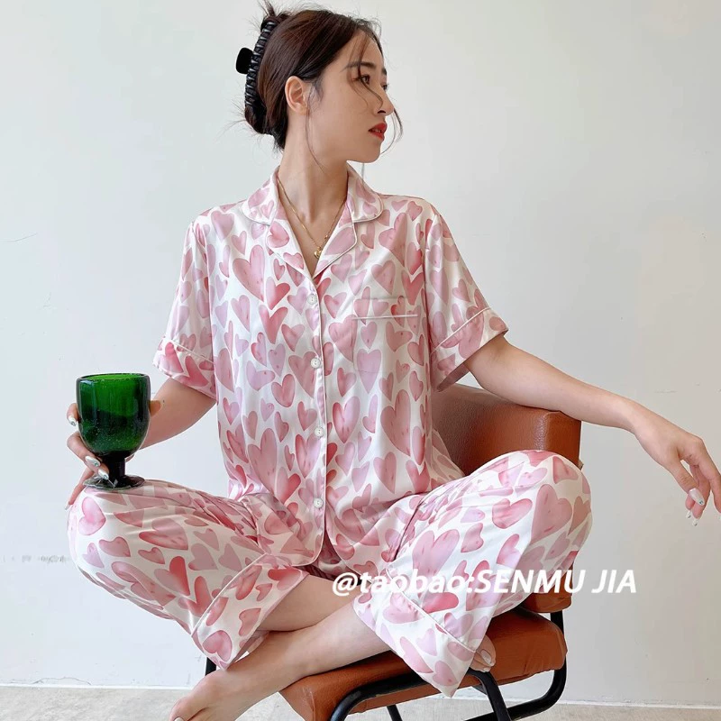 | nameOriginal | Ice silk women's summer thin short-sleeved trousers love pajamas |