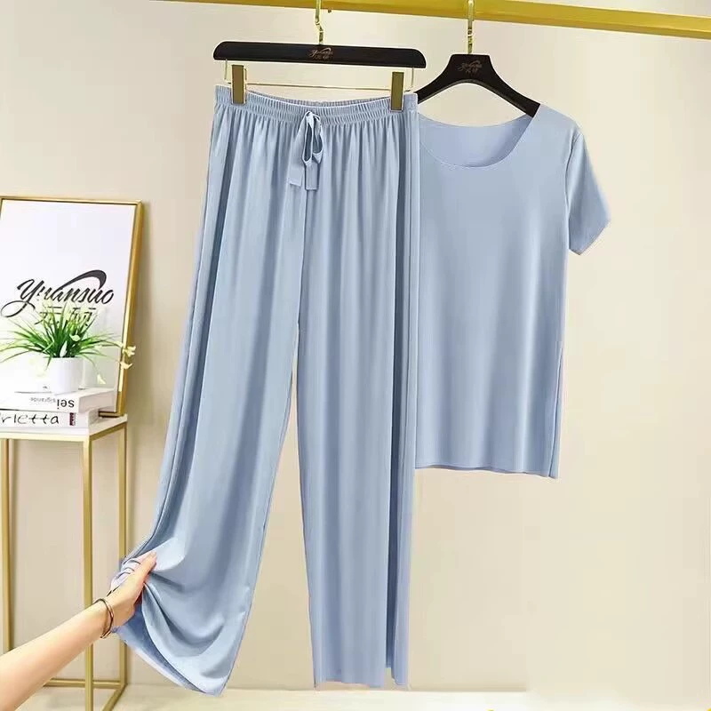 Ice silk women’s versatile short-sleeved T-shirt wide-leg pants pajamas