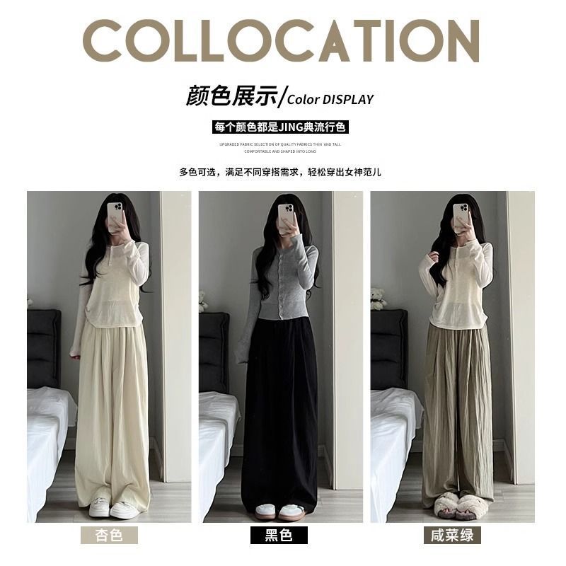 Ice Silk Yamamoto Pants Women’s Summer 2024 New Spring and Autumn High Waist Dummy Japanese Style Lazy Apricot Wide Leg Pants