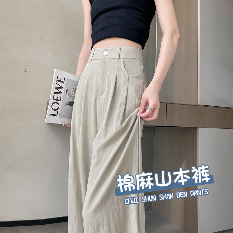 Ice Silk Yamamoto Pants Women's Summer Thin 2024 Dosing Sunscreen Casual Small Cool Straight Suit Wide-leg Pants