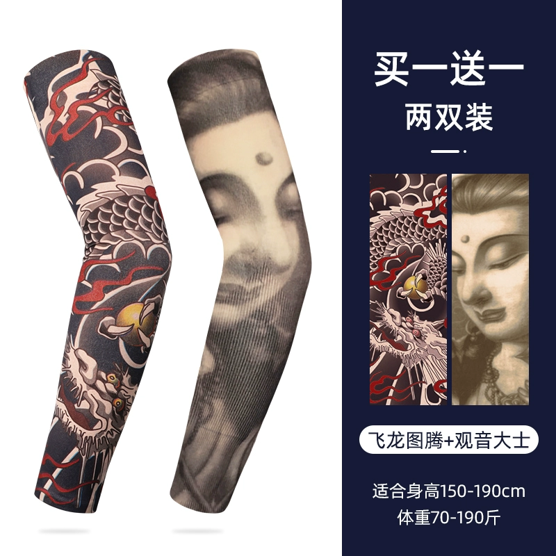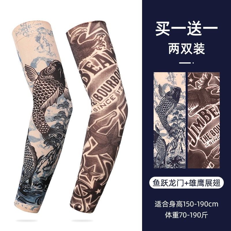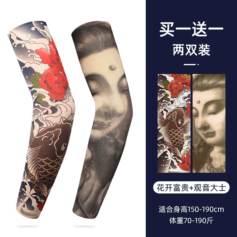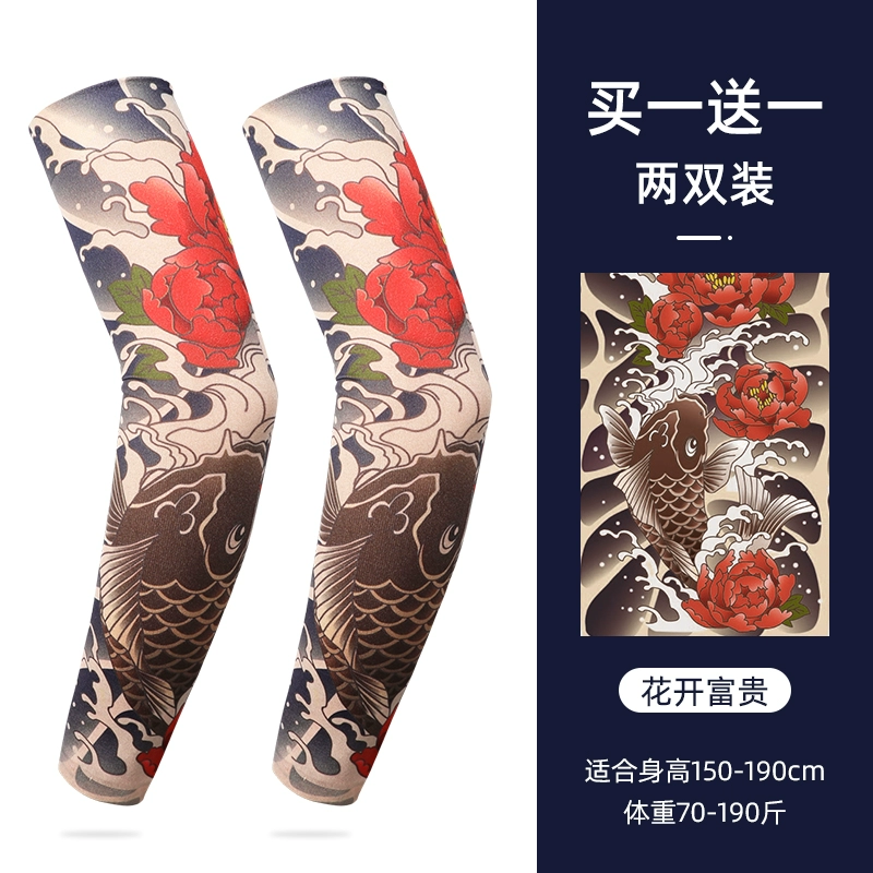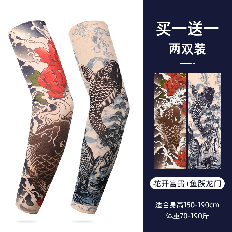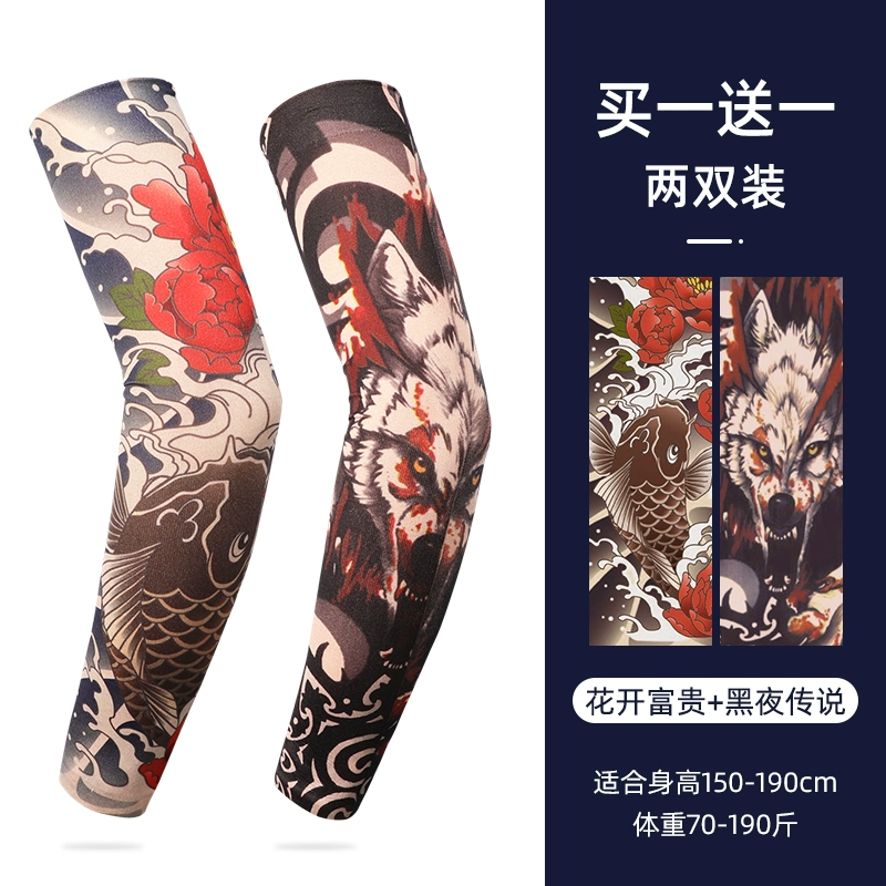 Ice Sleeve Sun Protection Tattoo Sleeve Men's Flower Arm Ice Silk Sleeve Summer Arm Guard Loose Ice Sleeve Hand Sleeve Ice Silk Sleeve