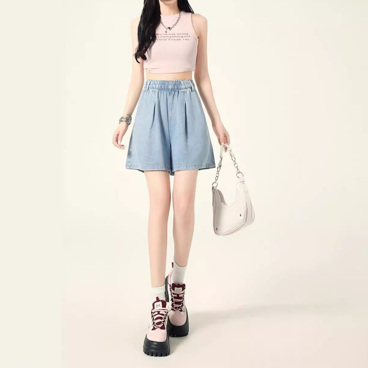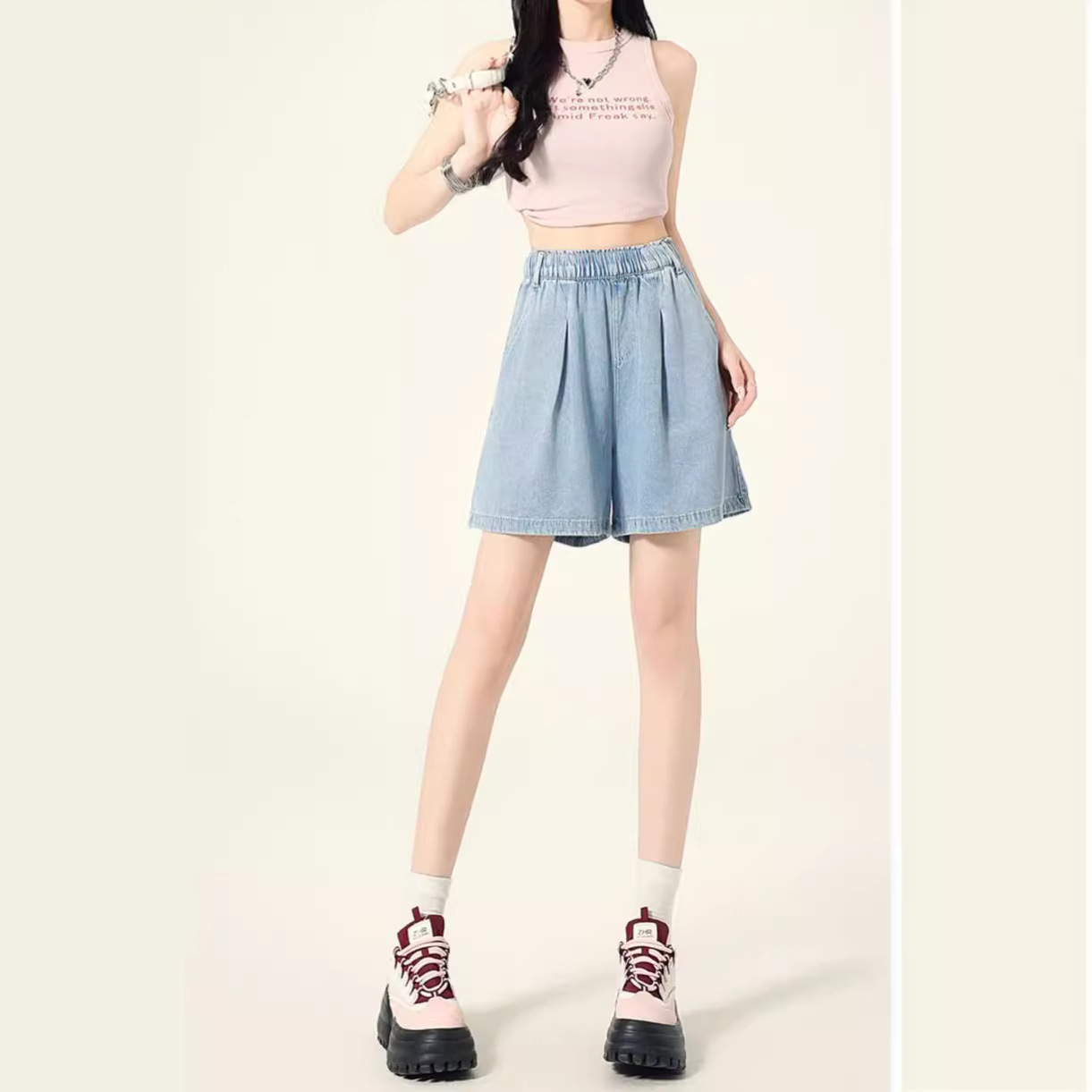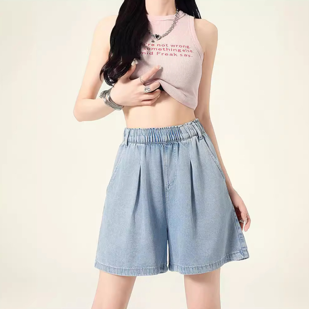 | nameOriginal | Ice Soft Denim Shorts Women's Summer Thin plus size High Waist Loose Slimming A- line Wide Leg Five-point Pants Ins |