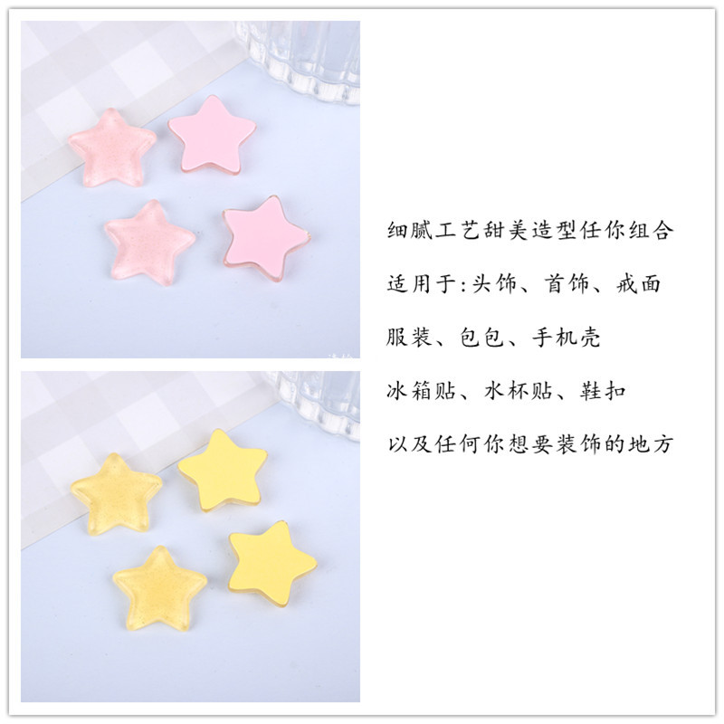 | nameOriginal | Ice through fine flash cute transparent five-pointed star diy hairpin hair accessories mobile phone case water cup stickers shoes resin accessories wholesale |
