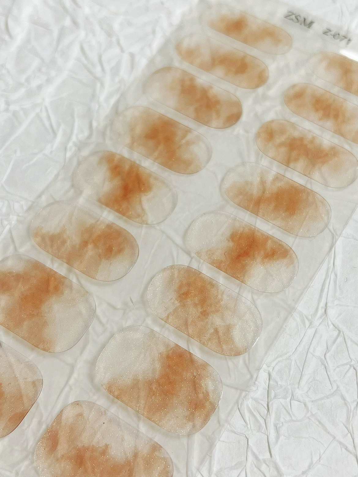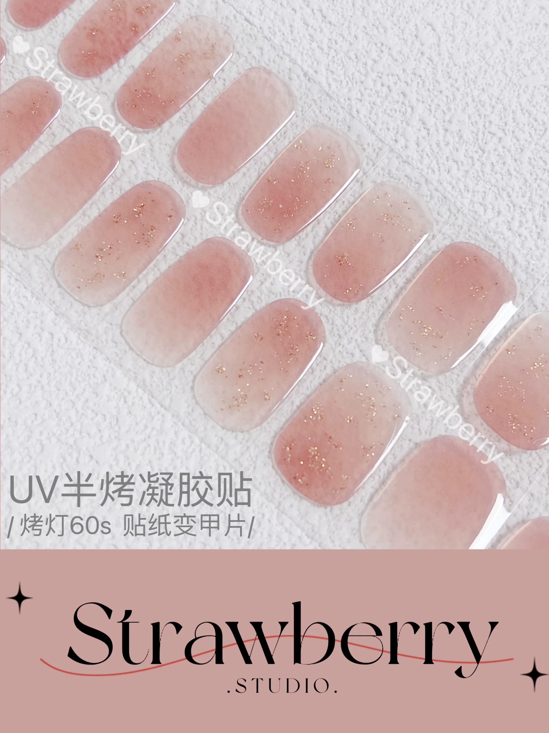 Ice-through smudged nail art stickers, half-baked, semi-cured gel UV nail stickers, waterproof and non-harming, 2024 commuting