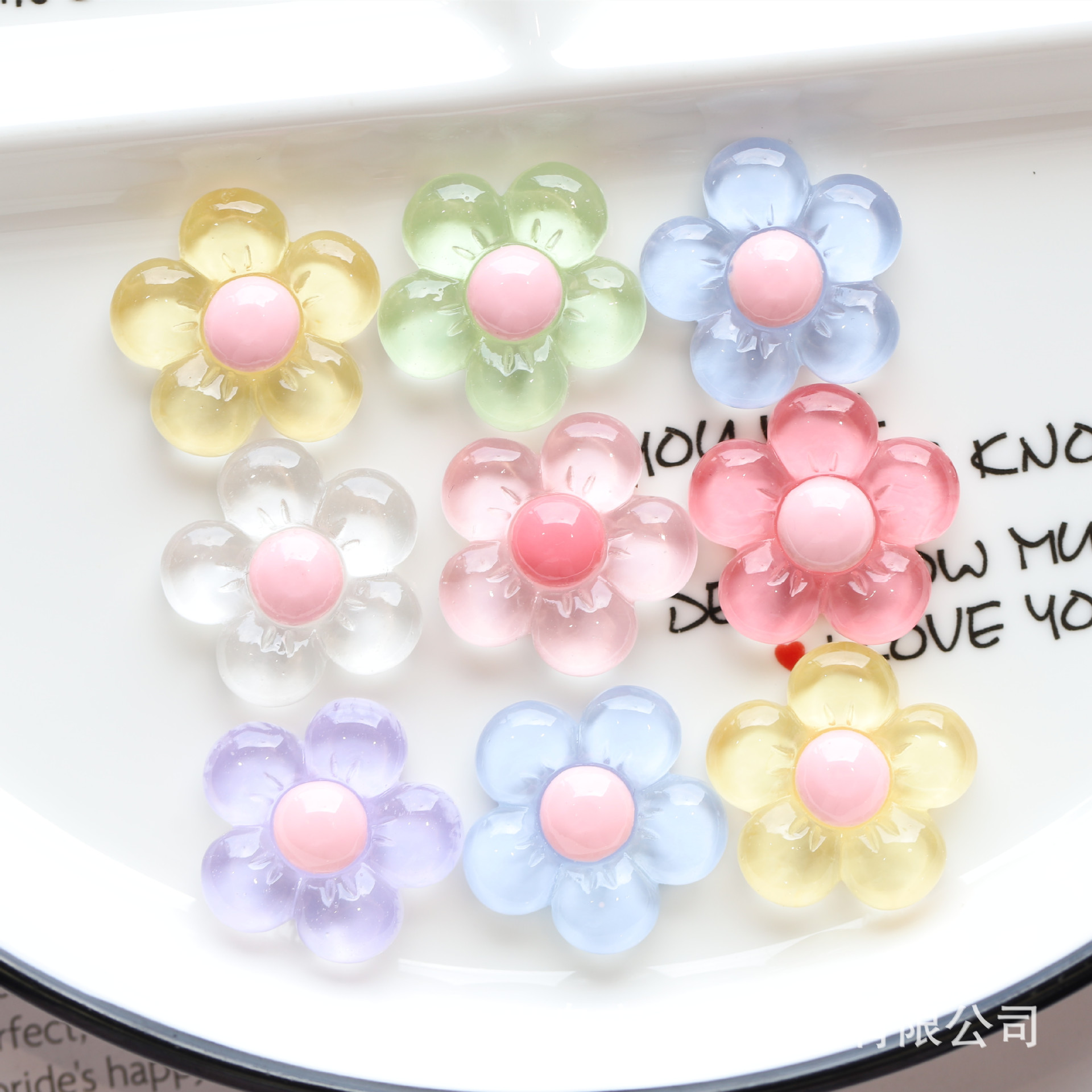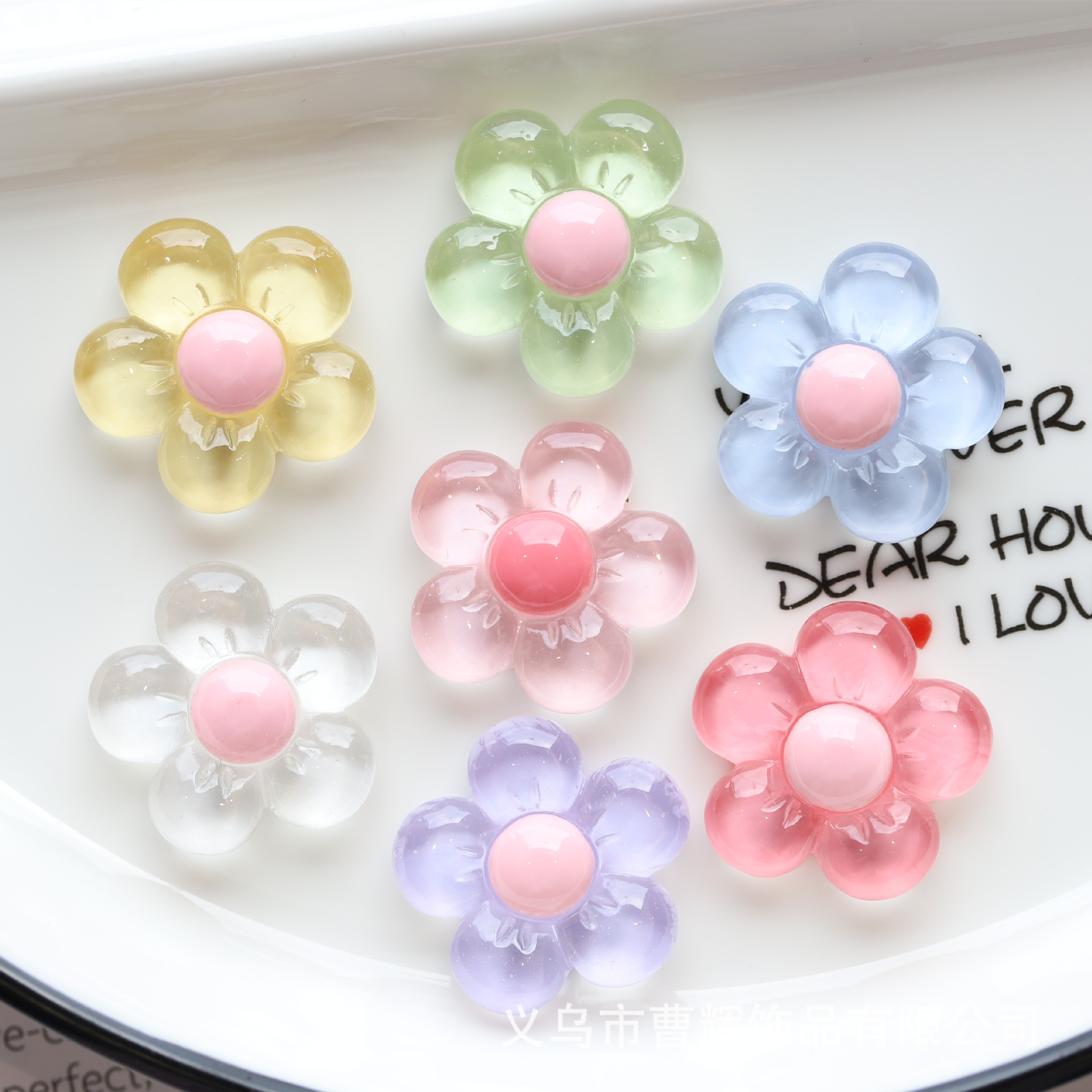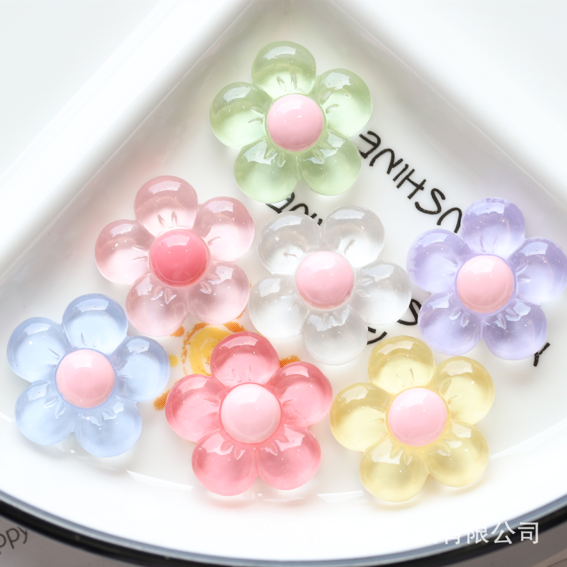 | nameOriginal | Ice transparent five-petal flower DIY cream glue resin accessories handmade hairpin hairband hole shoe buckle patch |