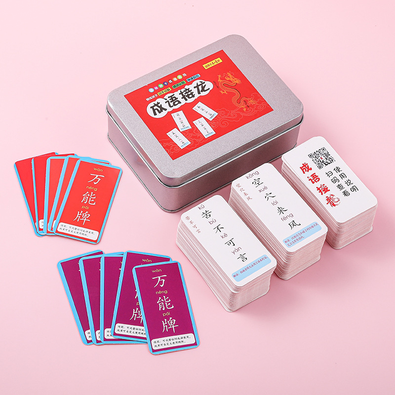 | nameOriginal | Idioms solitaire game poker Primary School students Chinese character fun board game card parent-child interaction picture game card |