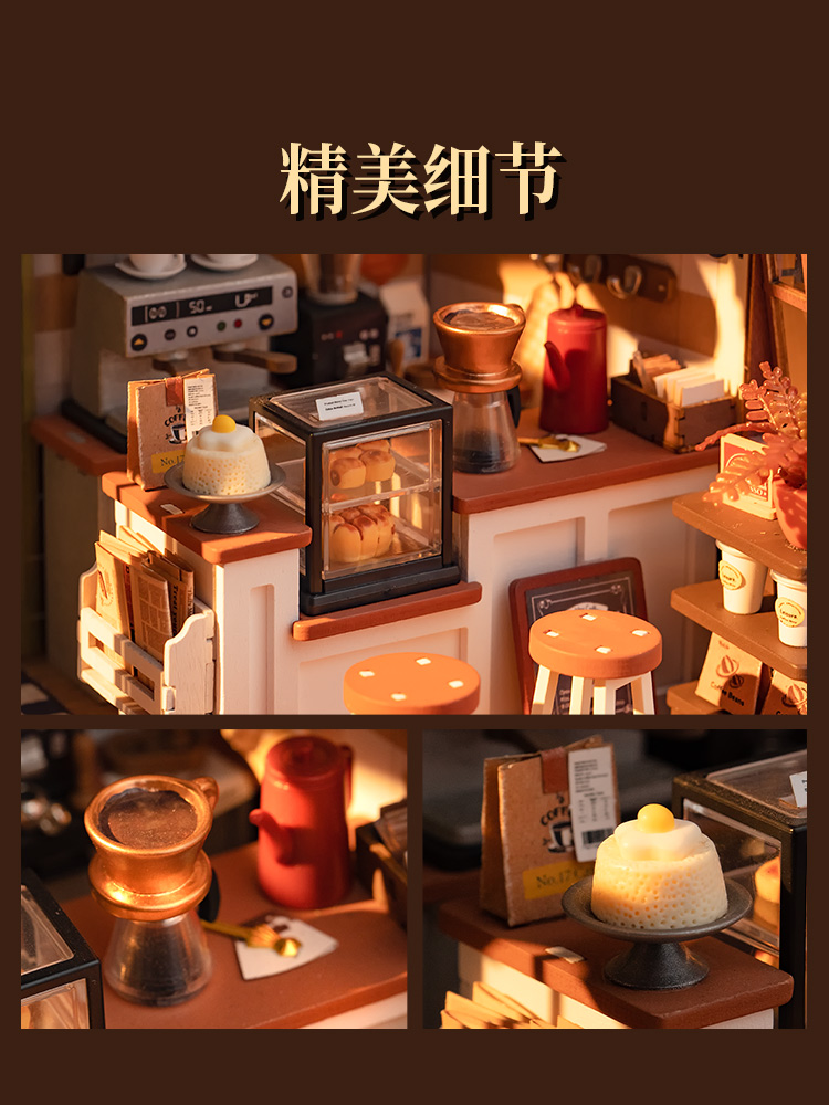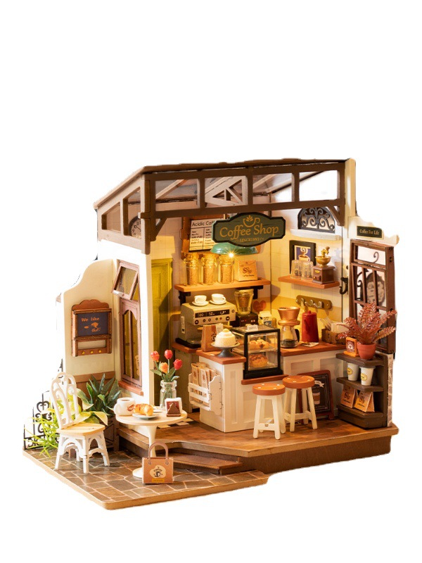 | nameOriginal | If lyrolife come to coffee shop diy cabin handmade small house wooden assembled model villa building block gift |