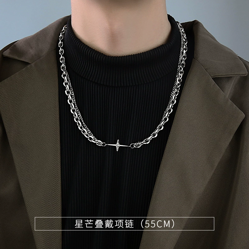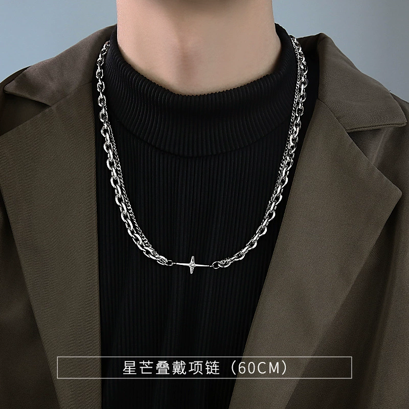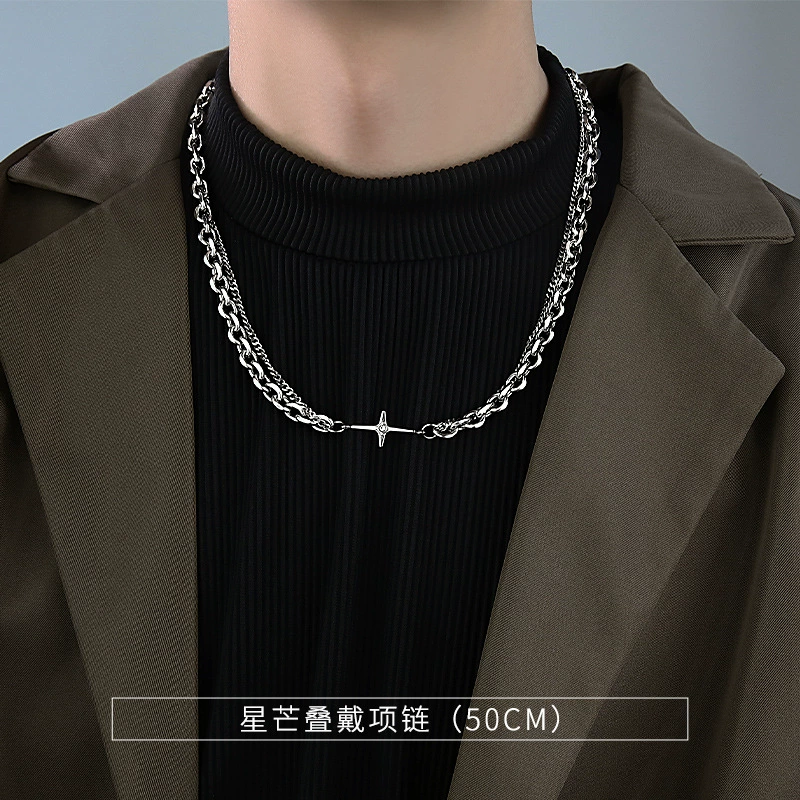 II official authentic Korean version ins star stacked double-layer necklace for men and women, trendy couple temperament clavicle design