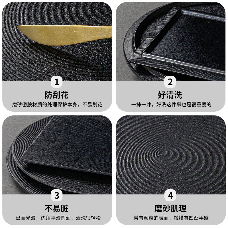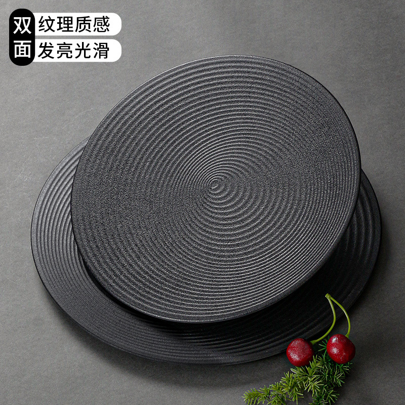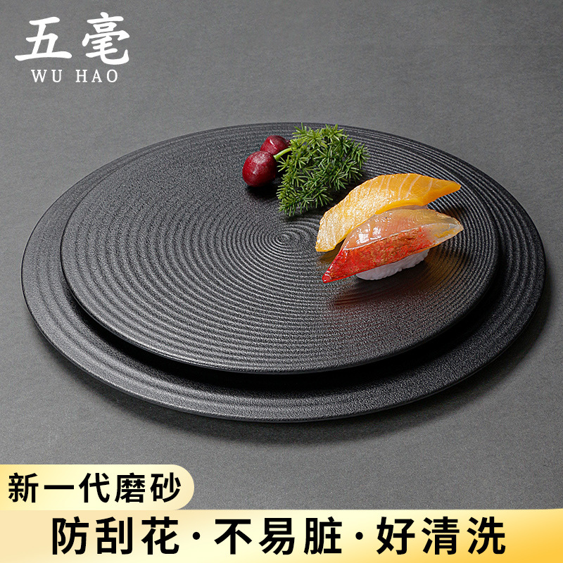 | nameOriginal | IJ6J wholesale melamine tableware round black plate commercial plastic plate Japanese plate barbecue plate pizza flat |