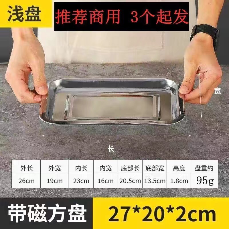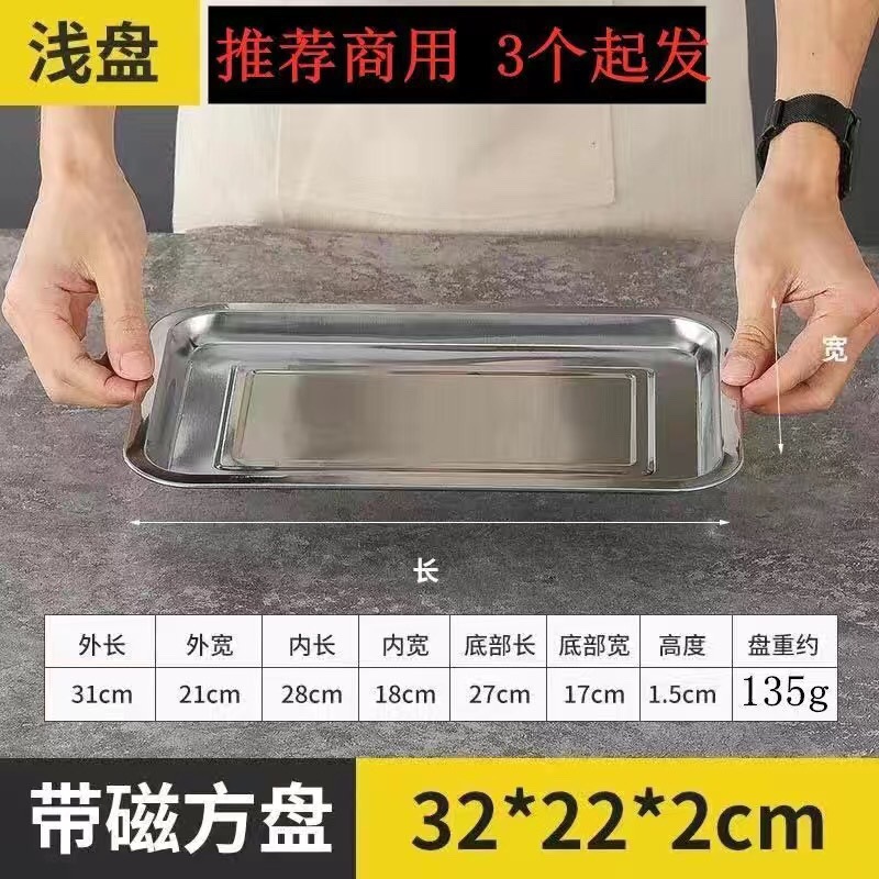 IJ6J wholesale stainless steel shallow plate steamed rice plate household square plate rectangular tray dinner plate barbecue skewers