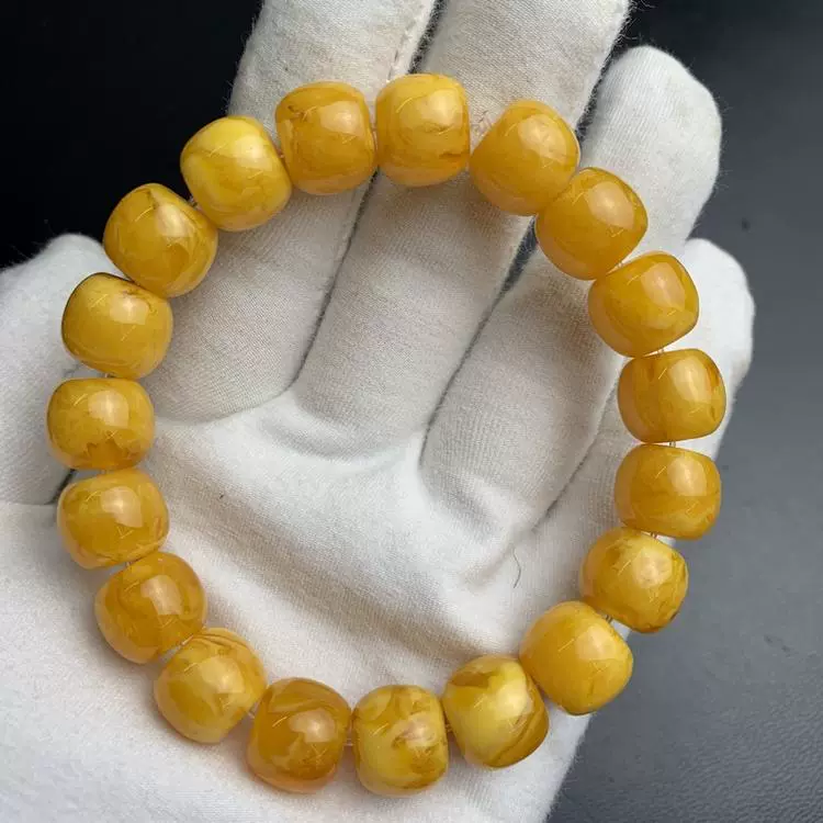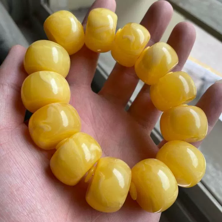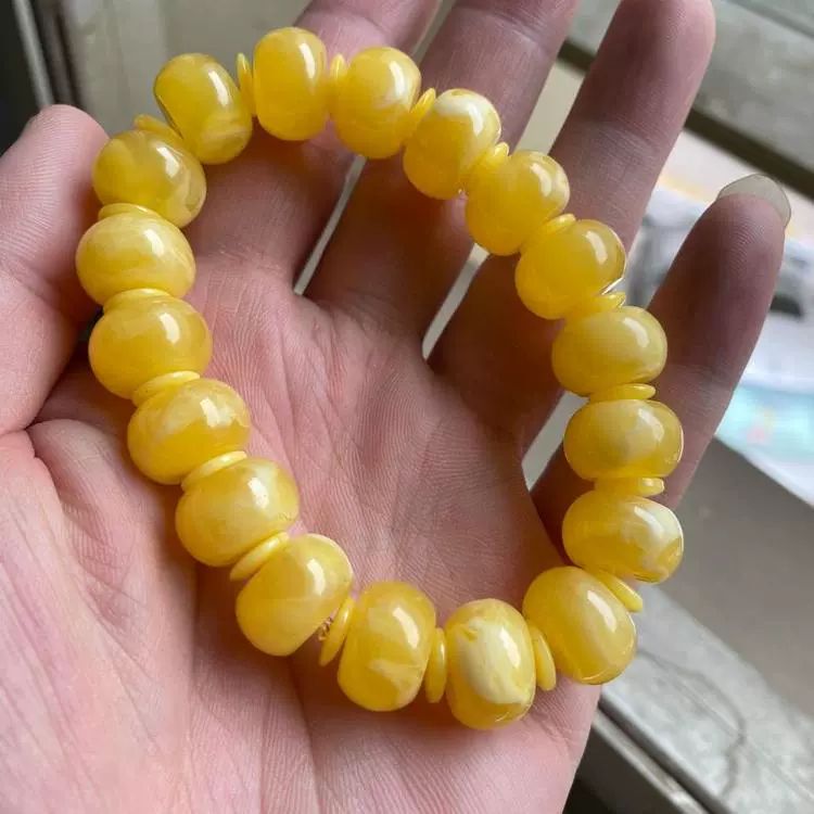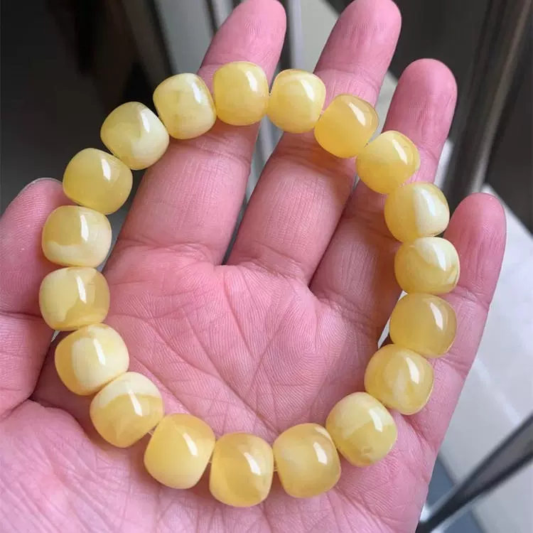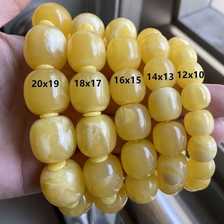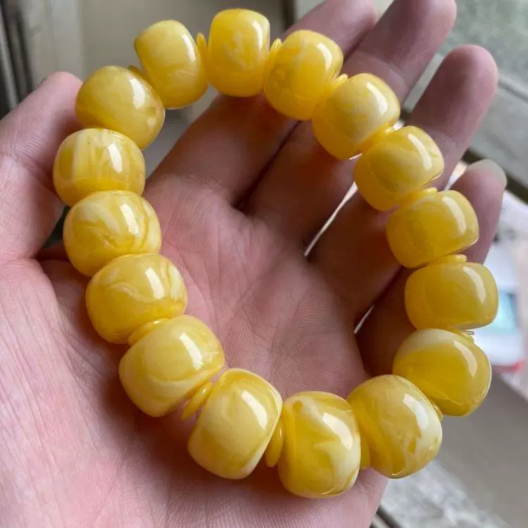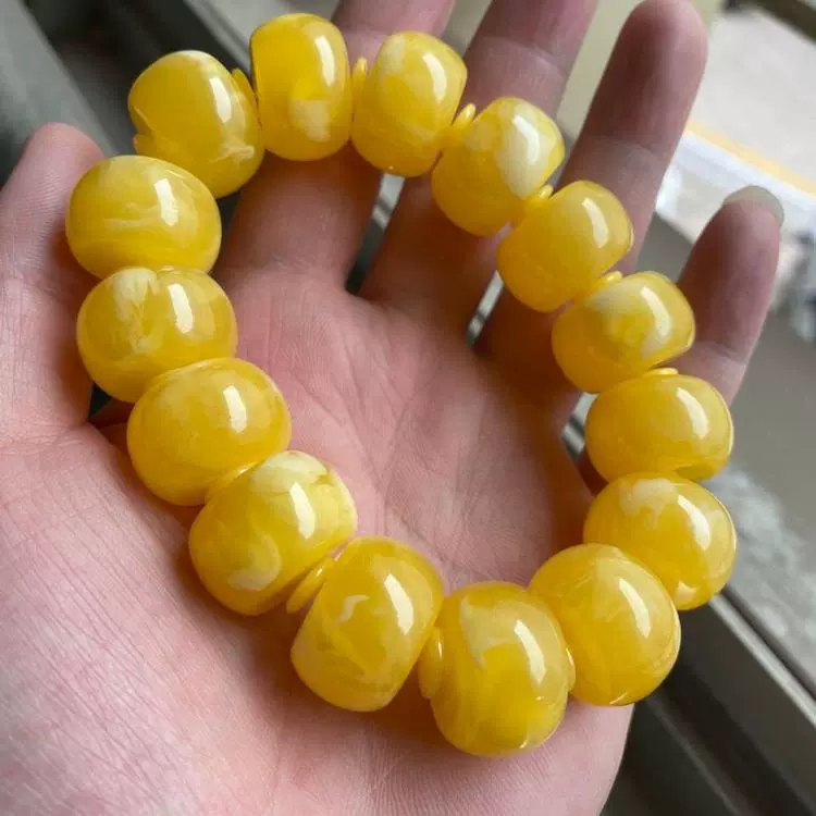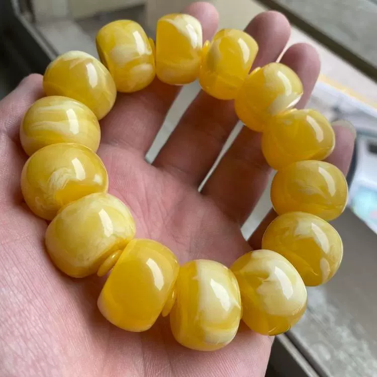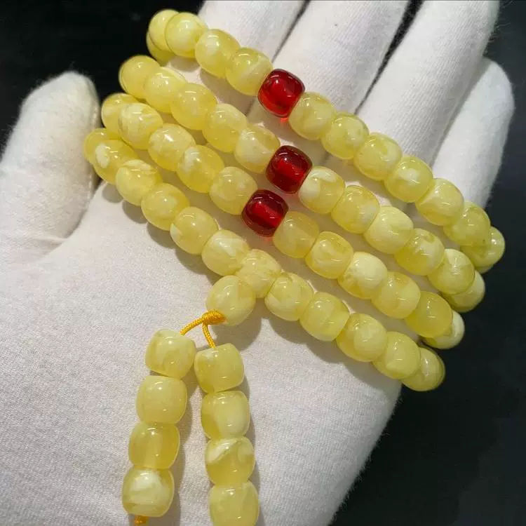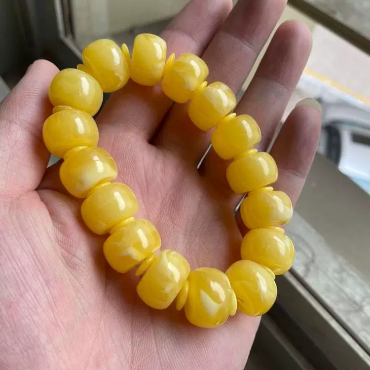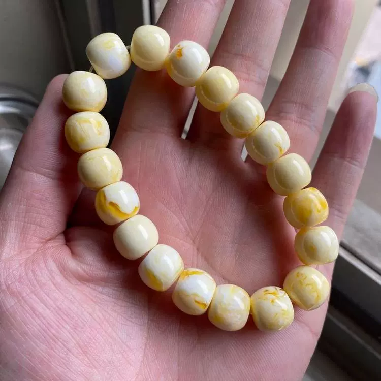 | nameOriginal | Imitation beeswax chicken fat yellow and white flower drum beads bracelet accessories Rudraksha star and moon resin bucket beads floating flower single circle Buddha beads |