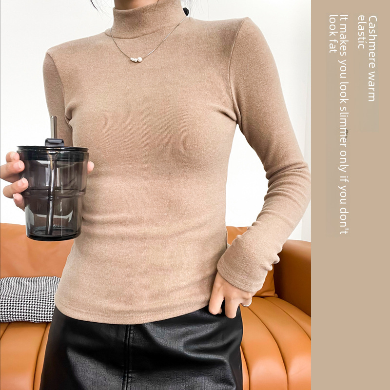 | nameOriginal | Imitation cashmere mid-collar half-high collar plus velvet sanding inner base shirt Women's wholesale autumn and winter base clothes slim long sleeve |