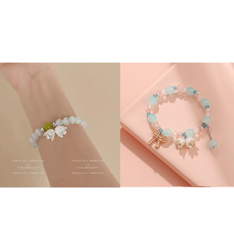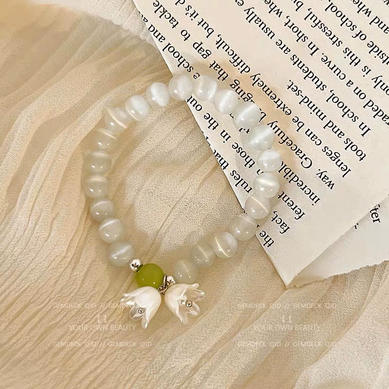 Imitation cat's eye stone, lily of the valley flower bracelet, a must-have bracelet for students who are always good at every exam. Sweet and super fairy gift to best friend and boyfriend.
