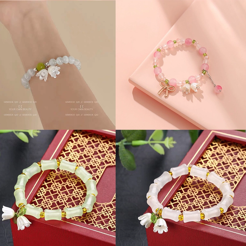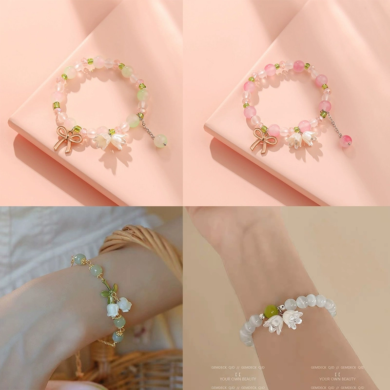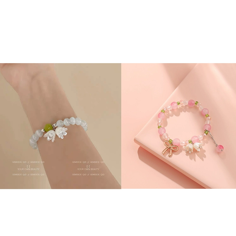 Imitation cat’s eye stone, lily of the valley flower bracelet, a must-have bracelet for students who are always good at every exam. Sweet and super fairy gift to best friend and boyfriend.