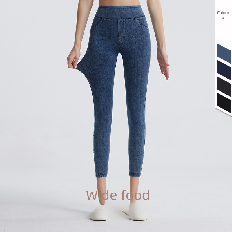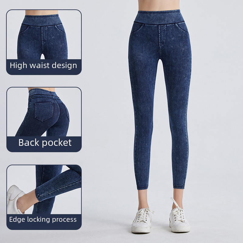 | nameOriginal | Imitation Denim Fitness Pants Women's High Waist Slimming Hip Lifting Peach Elastic Outer Wear Double Pocket Running Yoga Casual Pants |