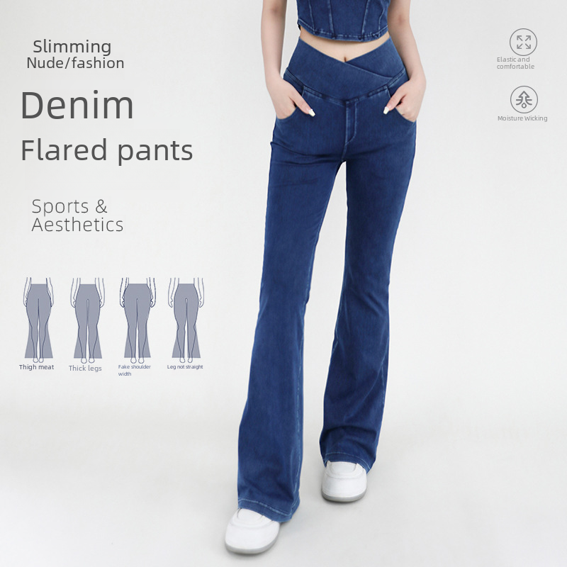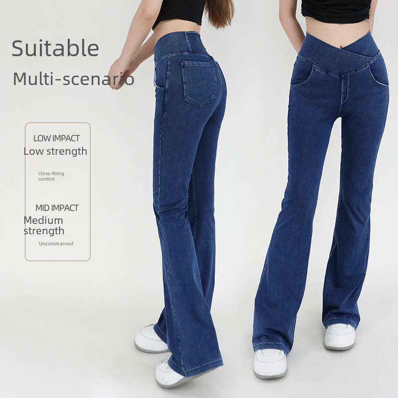 | nameOriginal | Imitation Denim Sports Yoga Pants Women's Crossover High Waist Belly-lifting Hip Pocket Micro-flared Pants Outer Wear Fitness Casual Pants |